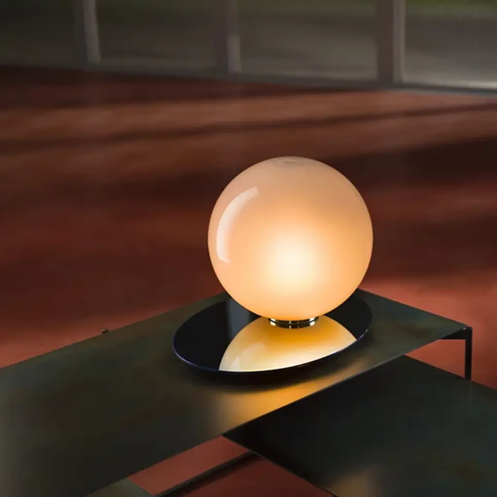 Presented by Bomma, the Umbra Table Lamp features details that embody the relation of geometric objects and their shadows with sophisticated elegance. Its metal plate derives from the perfectly elliptical shadow cast by a crystal ball and mirrors the refined color scheme of the mouth-blown piece. Traditional glassmaking techniques ensure that each piece from this collection is truly an original.