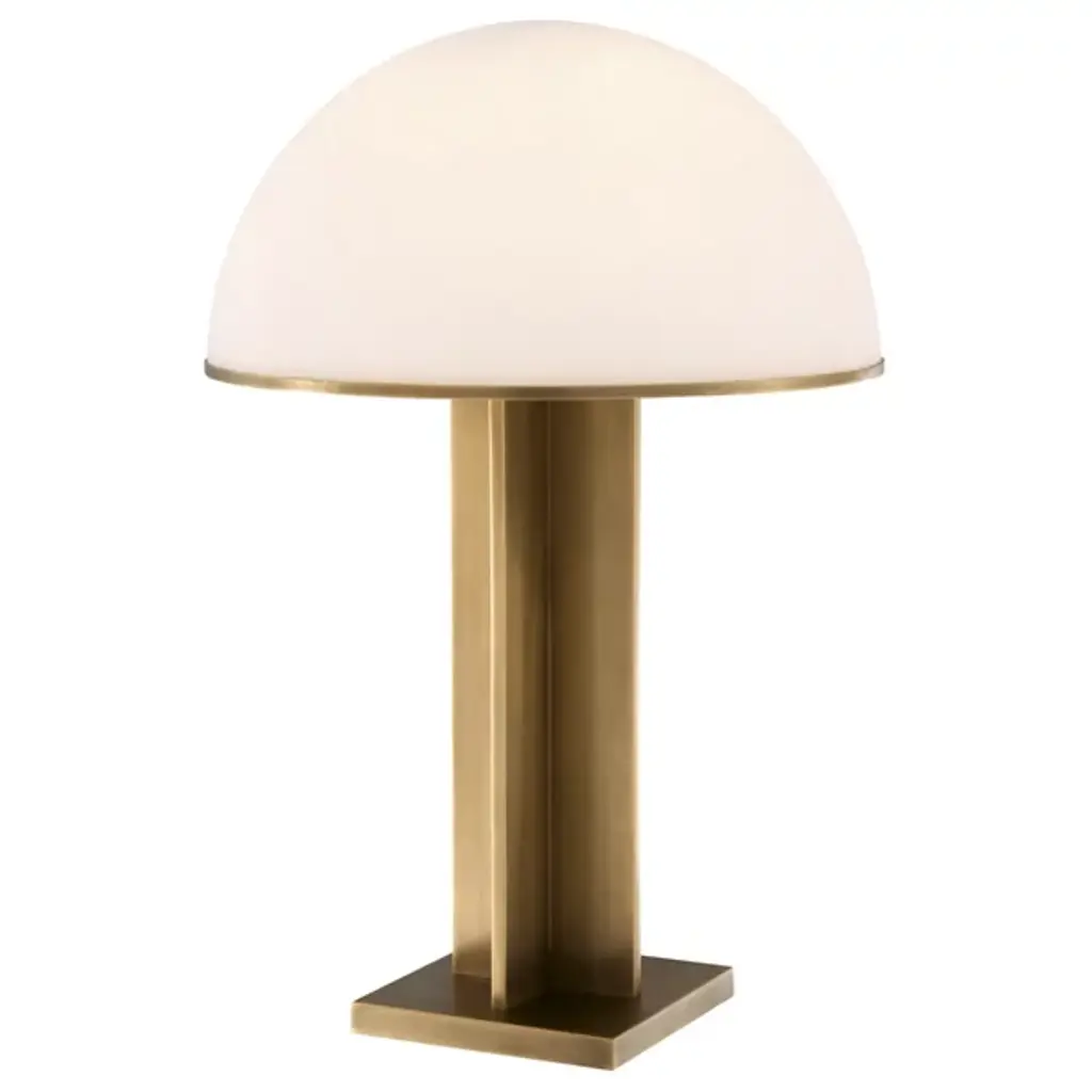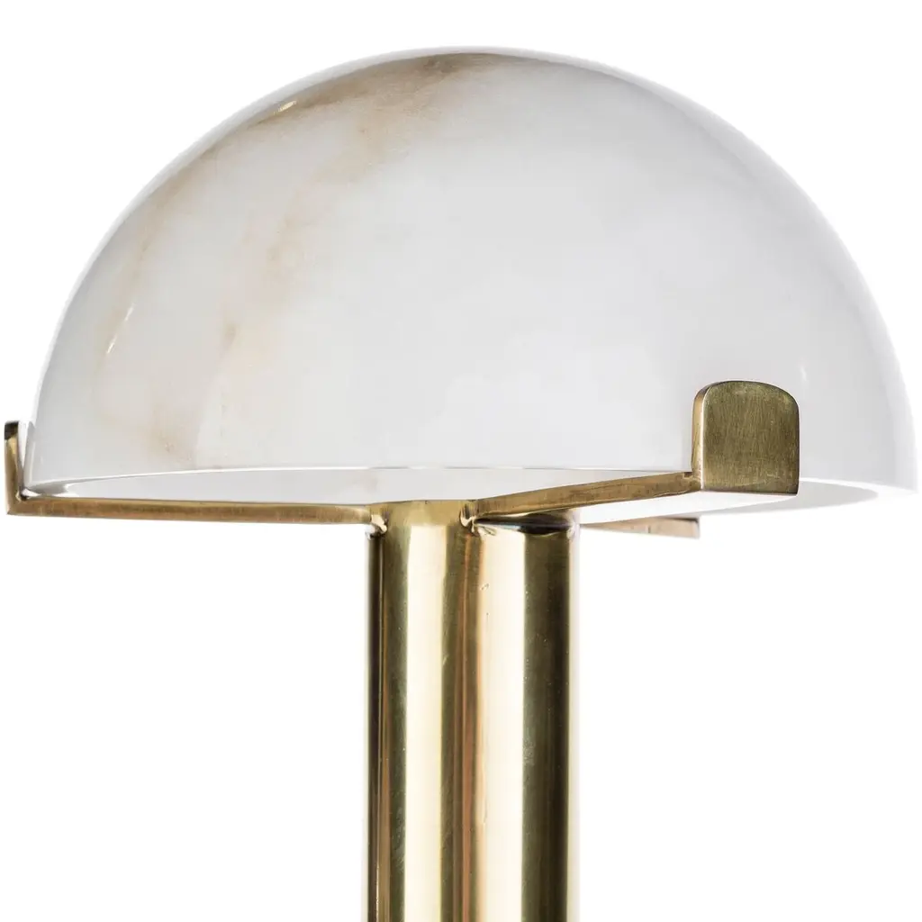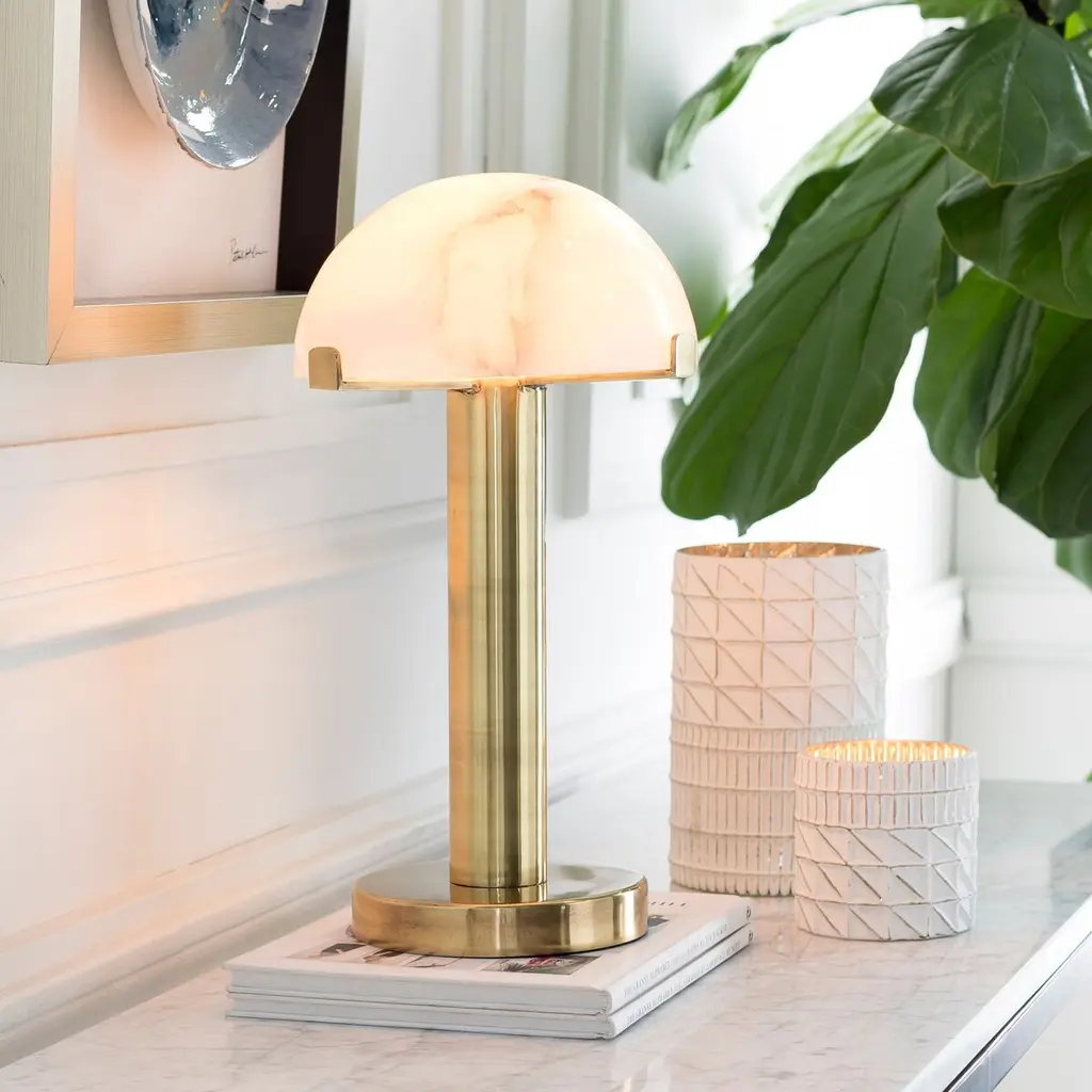 With its gleaming golden body and curved alabaster-like shade, this table lamp will bring a dash of Art Deco glamour to a room.