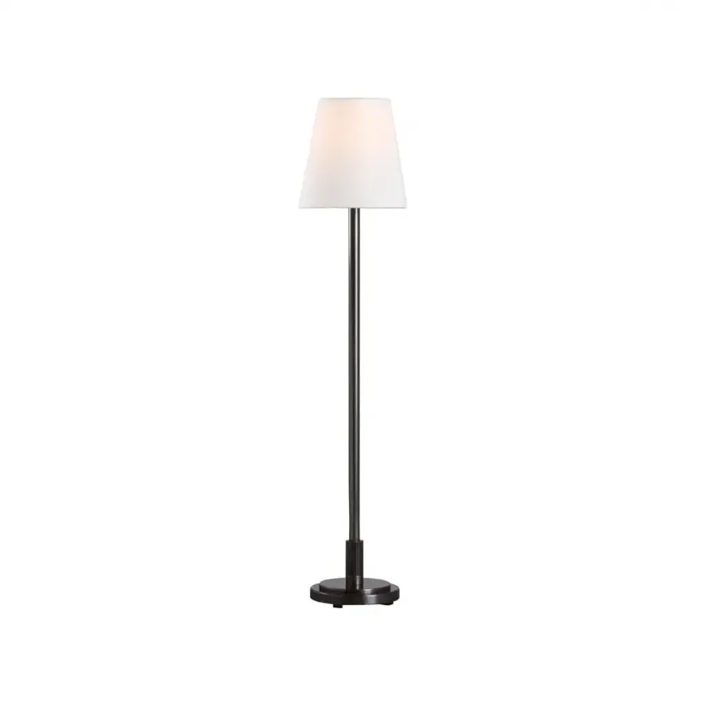 This elegant metal buffet lamp features a sleek, minimalist design with a rich oil rubbed bronze finish. Its warm, golden patina adds character and depth, creating a timeless look that blends vintage charm with modern simplicity. Designed by Jamie Merida.