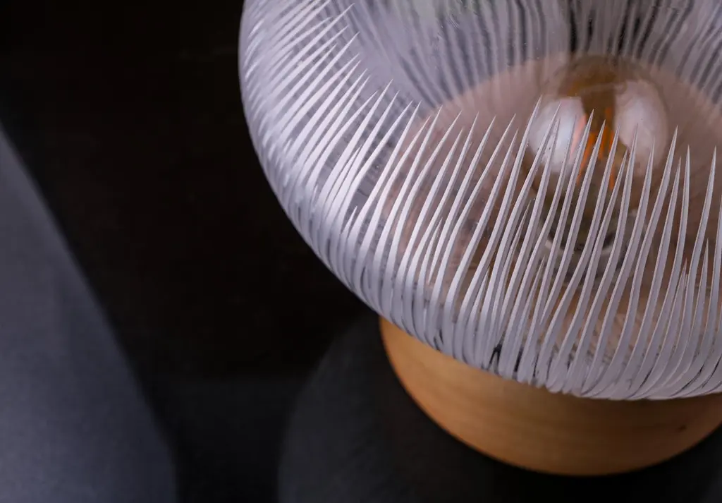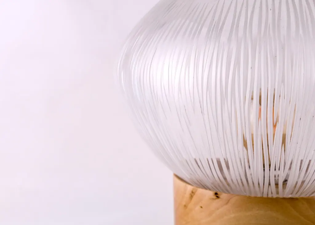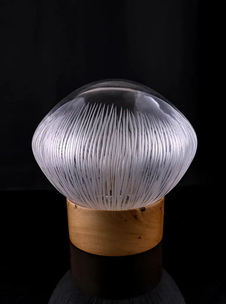 Unique blown glass table lamp "Moi" Ceren GurkanDimensions: Ø 29 x H 40 cm Materials: Glass, woodAll our lamps can be wired according to each country. If sold to the USA it will be wired for the USA for instance.Ceren Gurkan is an important contemporary designer. Ceren, is a lighting and product specialised in glass blowing designer born in Turkey. She studied ceramic and glass design at Mimar Sinan University and graduated in 2009.She started her career as a sculptor assistant (’07-’09). She became the Design Director of Yakamoz Vitray, a glass manufacturer company where she spent 2 years.(’09-’11) and worked as the Product Designer in Urart El Sanatlari, a company manufacturing traditional objects and jewelry made by glass and metal.(’11-’12). Meanwhile, she also positioned between ceramic design, painting and photography.She is a creative individual who has always been into creating objects fromnature and daily life; but making them functional was her ultimate goal. She enjoys experimenting with different light sources and crafty materials.