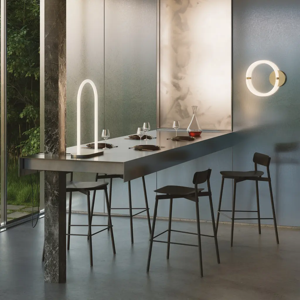 Riffing on the classic neon light, designers Arianna Lelli Mami and Chiara di Pinto employ a curved LED tube for their standout table lamp. Set against a gleaming brass plate on a steel base, the glowing arc also throws intriguing shadows on surrounding surfaces. Though the founders of Milan’s Studiopepe admit the design was technically challenging, their virtuosity is on full display in Unseen, available in a choice of sizes.