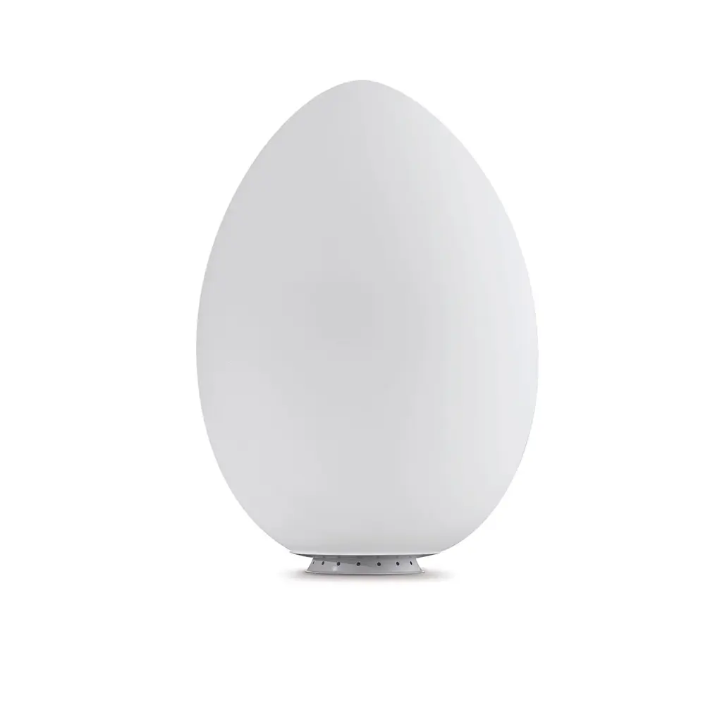 A natural shape that has always been a symbol of perfection, the harmonious combination of symmetry and asymmetry. An ironic idea that is a winner. As in nature, also in the Uovo lamp, the shell is the epitome of lightness: an elegant shape in frosted white blown glass that evenly diffuses a warm, welcoming light. Features