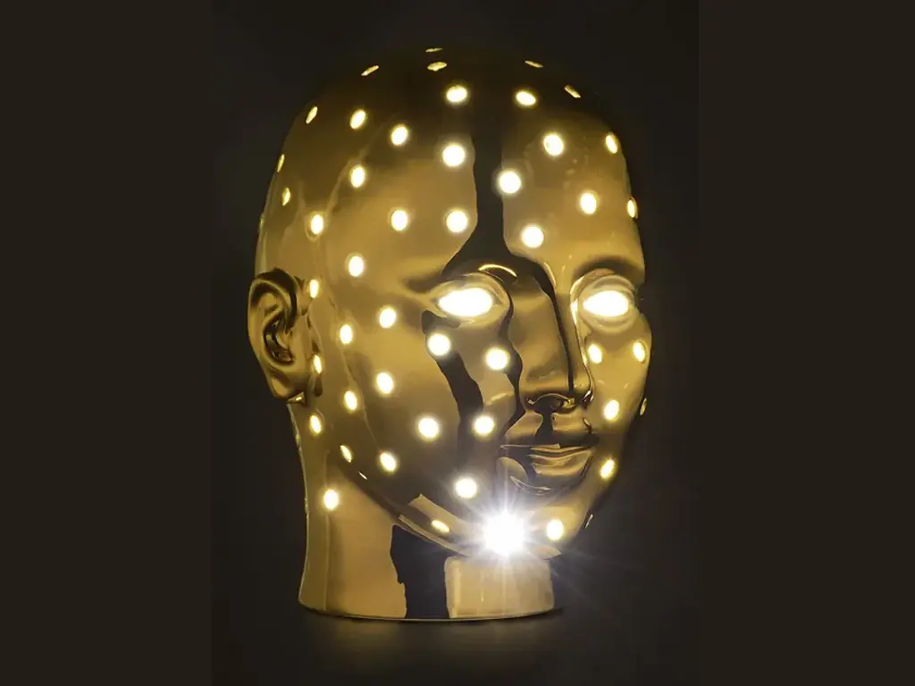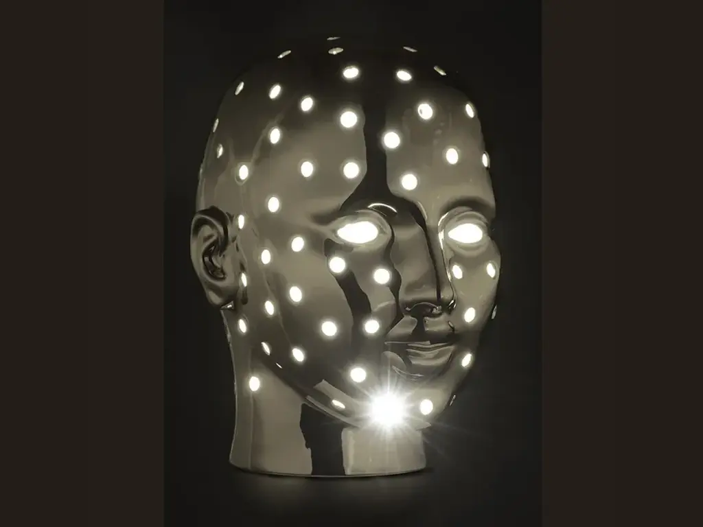 Urano, an original light source that looks like a human face.The main feature is given by the numerous holes on the surface from which emerge small bright rays that create pleasant and fascinating emotional atmospheres.