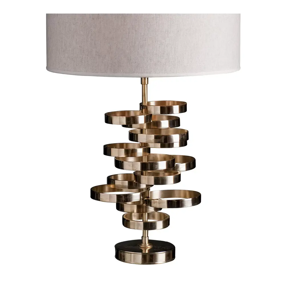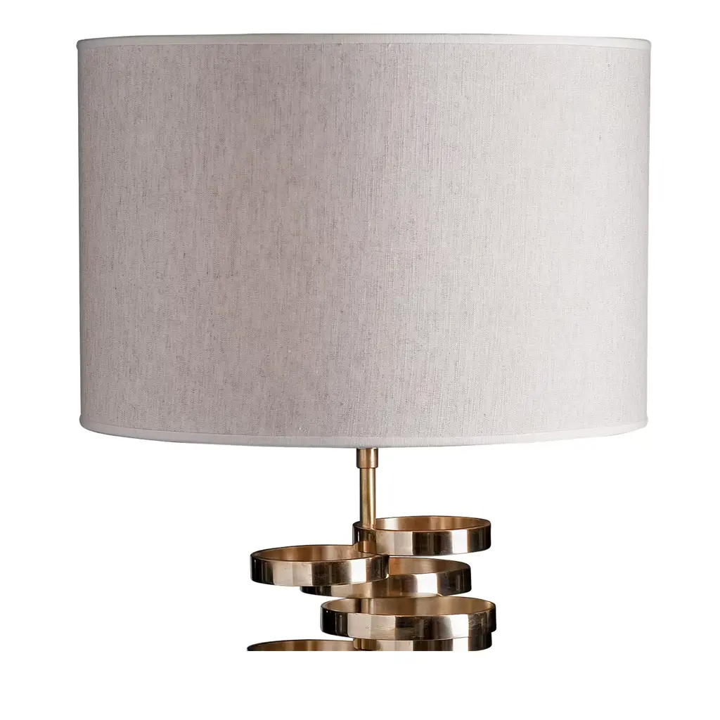 The Urano table lamp exudes elegance with its protected brass design and sophisticated ivory shade. Measuring 45 cm in diameter and 30 cm in height, the shade beautifully diffuses light, creating a warm atmosphere. The black silk cord adds a luxurious touch to its overall look. Equipped with an E27 bulb socket, the lamp supports a maximum of 60 watts, ensuring ample illumination for any space. The bulb is not included.