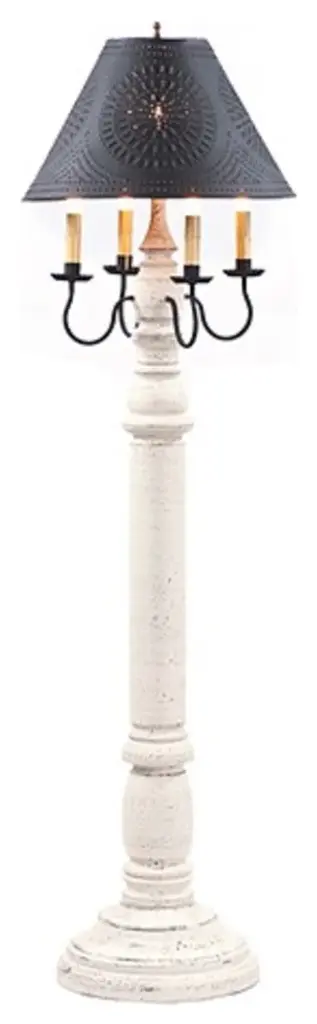 Usa Handmade Wood Table Lamp Bradford With Punched Tin Shade, Americana White