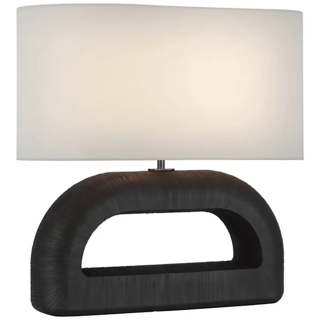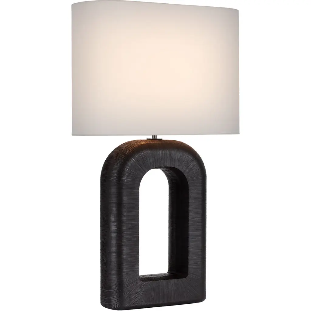 The Utopia Console Table Lamp from Visual Comfort Signature, formerly known as Visual Comfort, steps up the high-style sensibility of the home in its sculptural combo of forms. The piece takes in modern design through its clean silhouette and shapely composition. It makes its presence known with a rounded body that gets the eye passing through like a window. The body seduces up close with a radiating linear texture. On top, a rounded linen shade mellows the piece out as a soft, pure shape. A flip of the switch highlights the fine texture of the body and surrounds the piece with a sumptuous ambient glow.