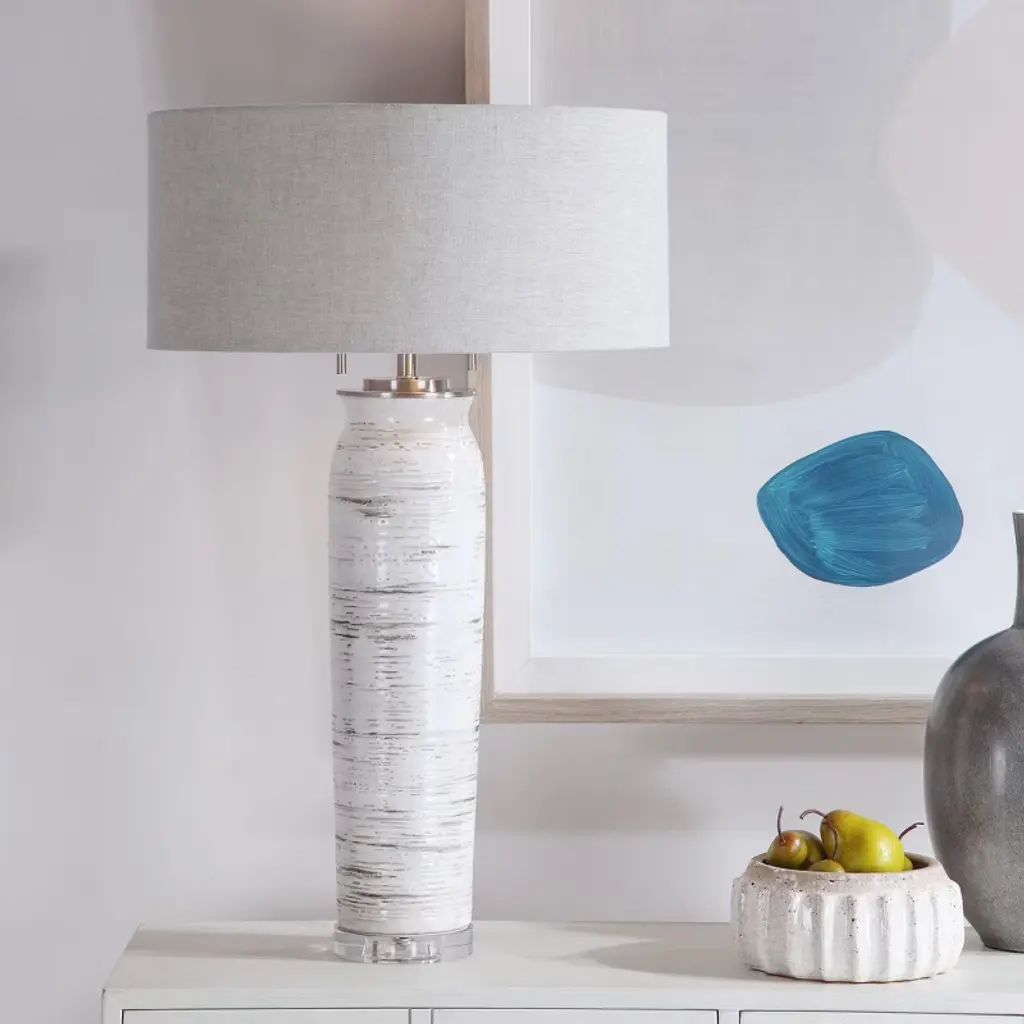 Uttermost 28275 Lenta White Table Lamp With Birch Inspired Ceramic Base And Crystal Foot