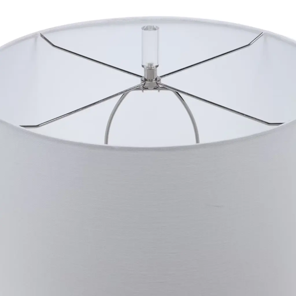 The Rialta Coastal Table Lamp brings a serene coastal charm with its ceramic base adorned in an aqua and teal crackle glaze, accented by subtle touches of rust brown for added depth and character. Polished nickel and crystal details elevate the design with a hint of sophistication, making this lamp a perfect choice for modern coastal interiors. A round hardback drum shade in crisp white linen completes the look, providing soft, ambient illumination. Key Features: Ceramic base with aqua and teal crackle glaze and rust brown accents. Polished nickel and crystal details enhance the elegant design. White linen round hardback drum shade offers a clean, fresh look. 3-way socket switch for versatile lighting options (bulb not included). Dimensions – 31 H, Shade 10 H x 17 Dia. (in), Weight – 19 lbs.