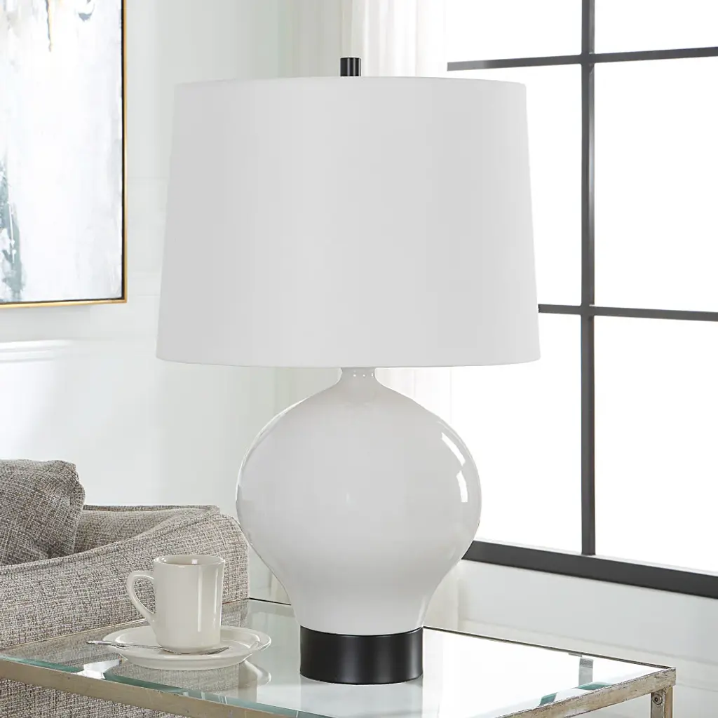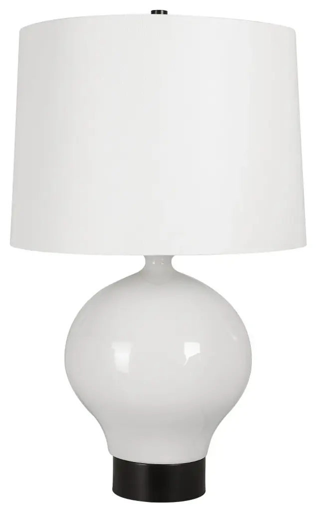 Simple Yet Sophisticated, Our Collar Table Lamp Is Designed With A Rounded Ceramic Base Finished In A Gloss White Glaze Accented With Satin Black Details.
