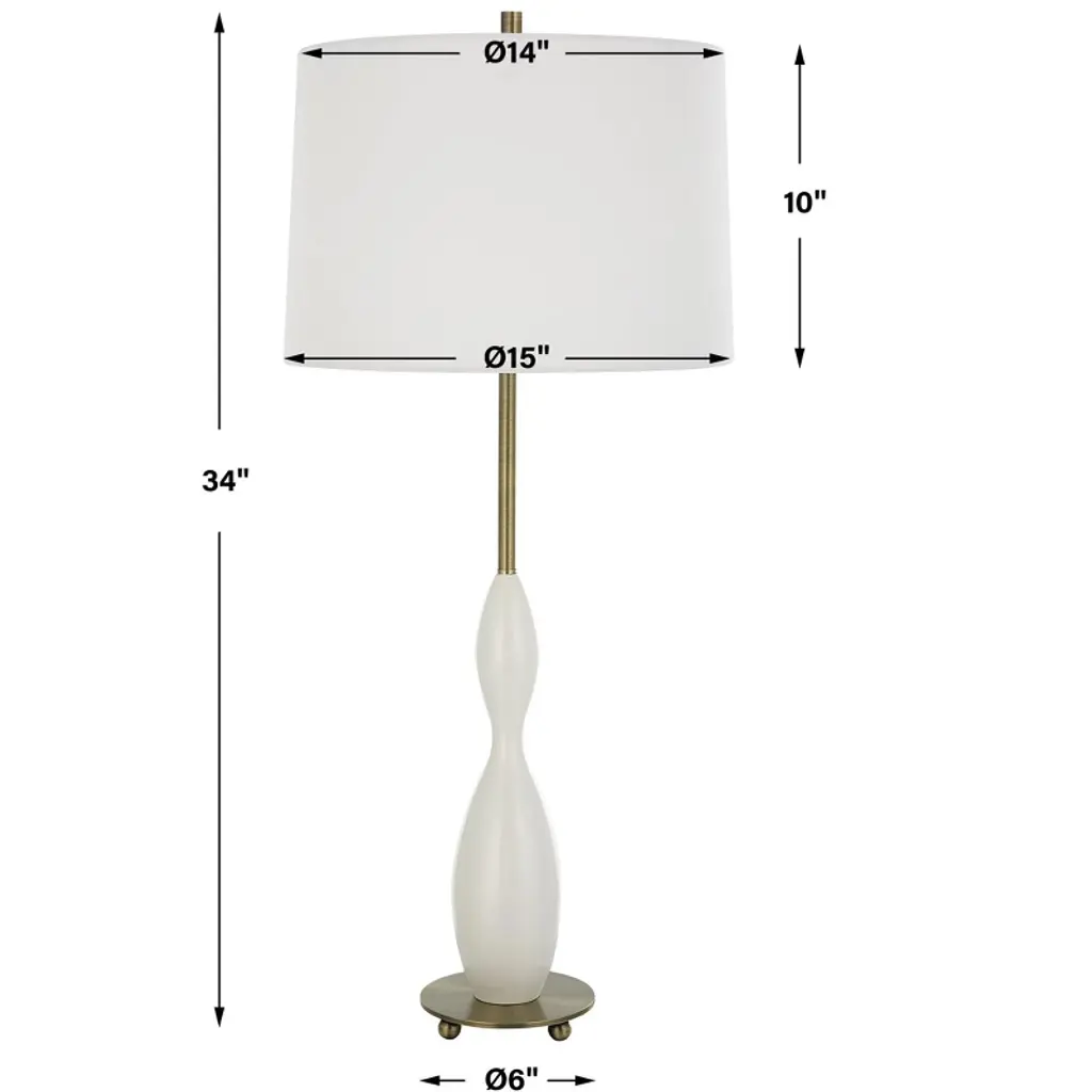 Uttermost 30235 Annora Glossy White Table Lamp With Curved Base And Antique Brass Accents