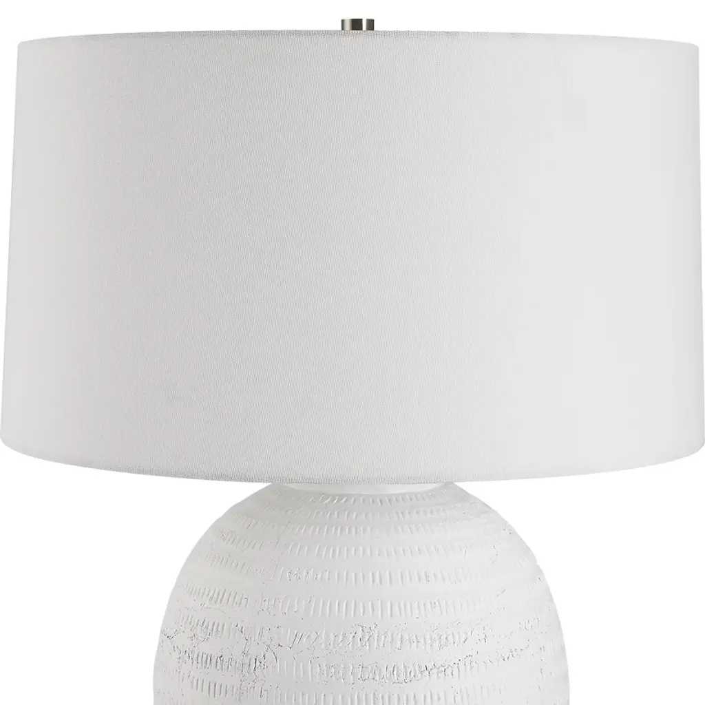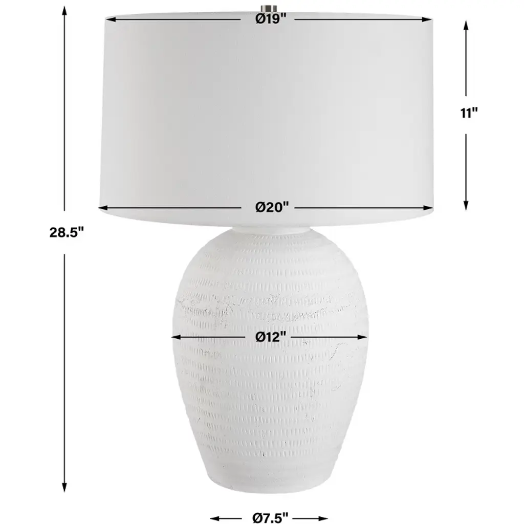 Uttermost 30236-1 Reyna Chalk White Ceramic Table Lamp With Textured Urn Base And Linen Shade