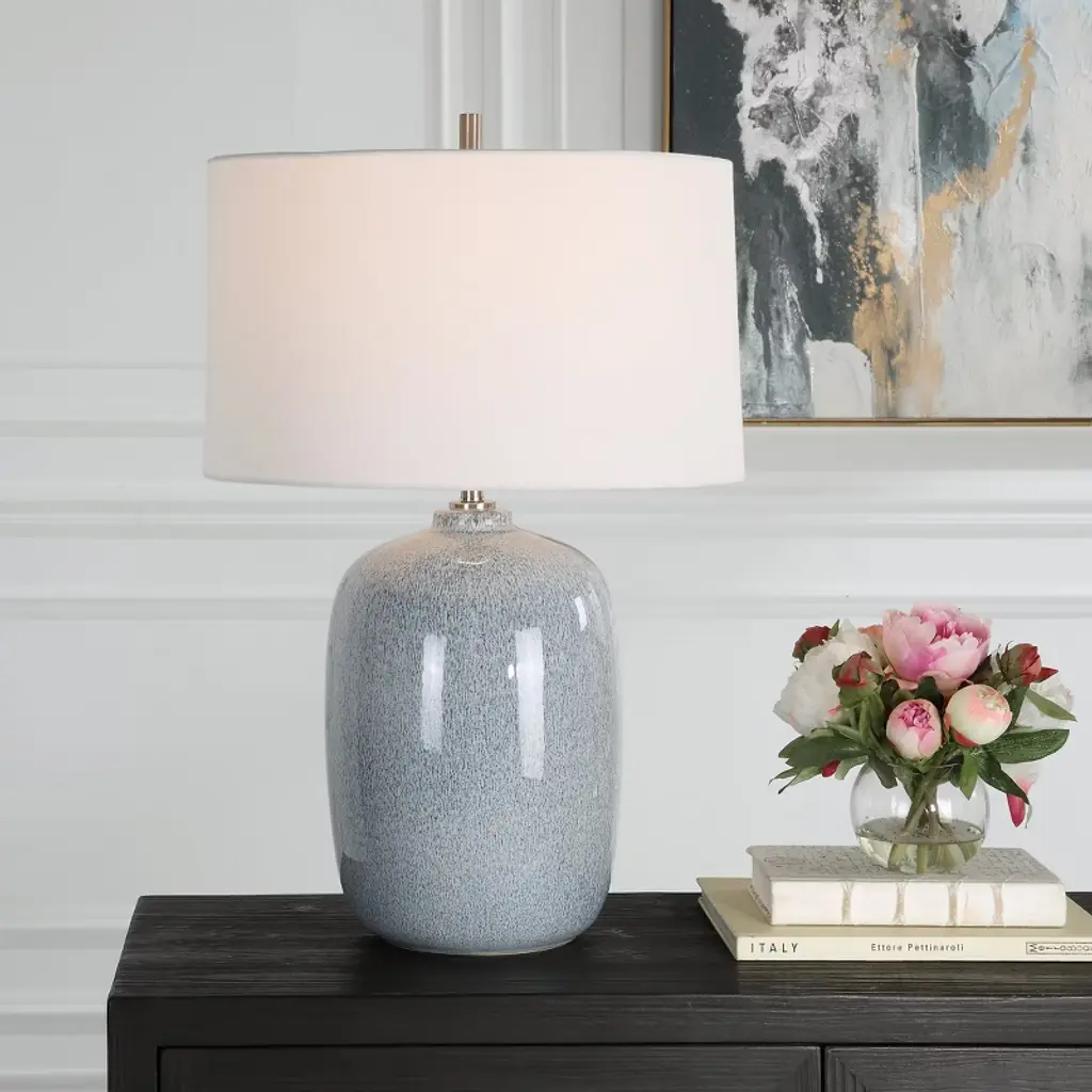Uttermost 30249 Jubilee Sky Blue Ceramic Table Lamp With Cobalt Mottled Accents