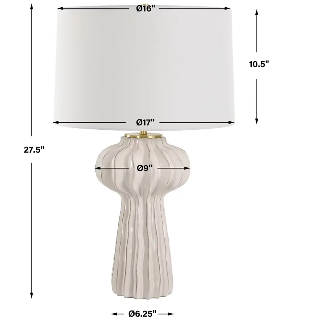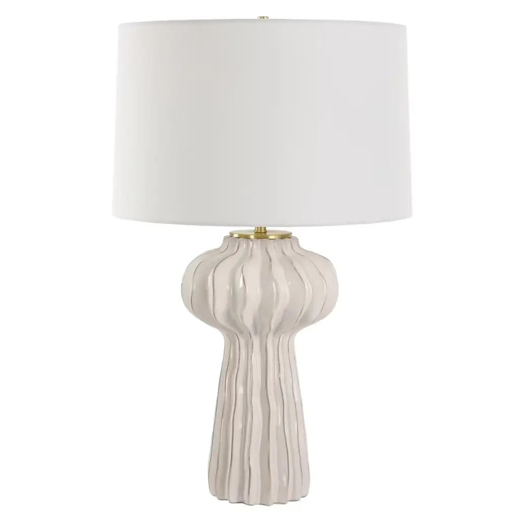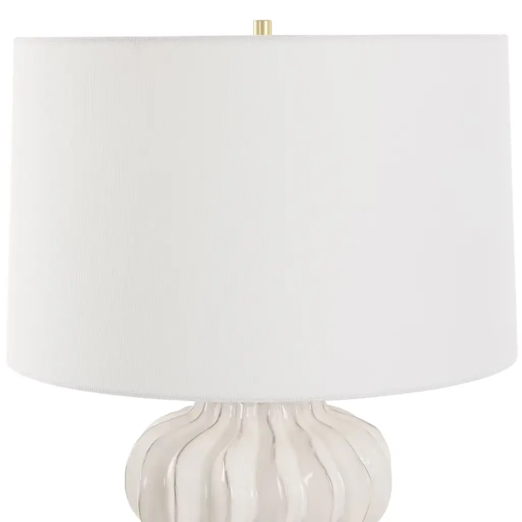 Uttermost 30258-1 Wrenley Ridged White Table Lamp With Glossy Distressed Porcelain Base