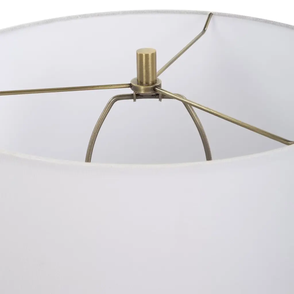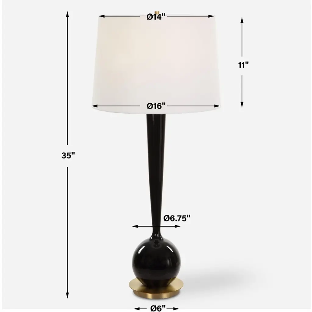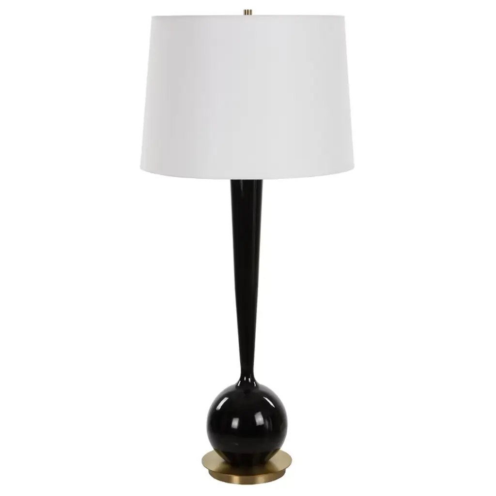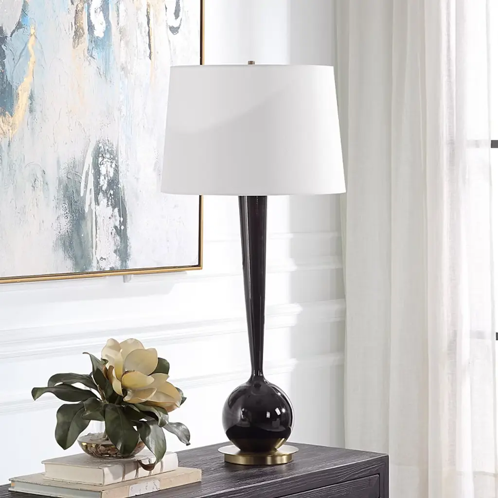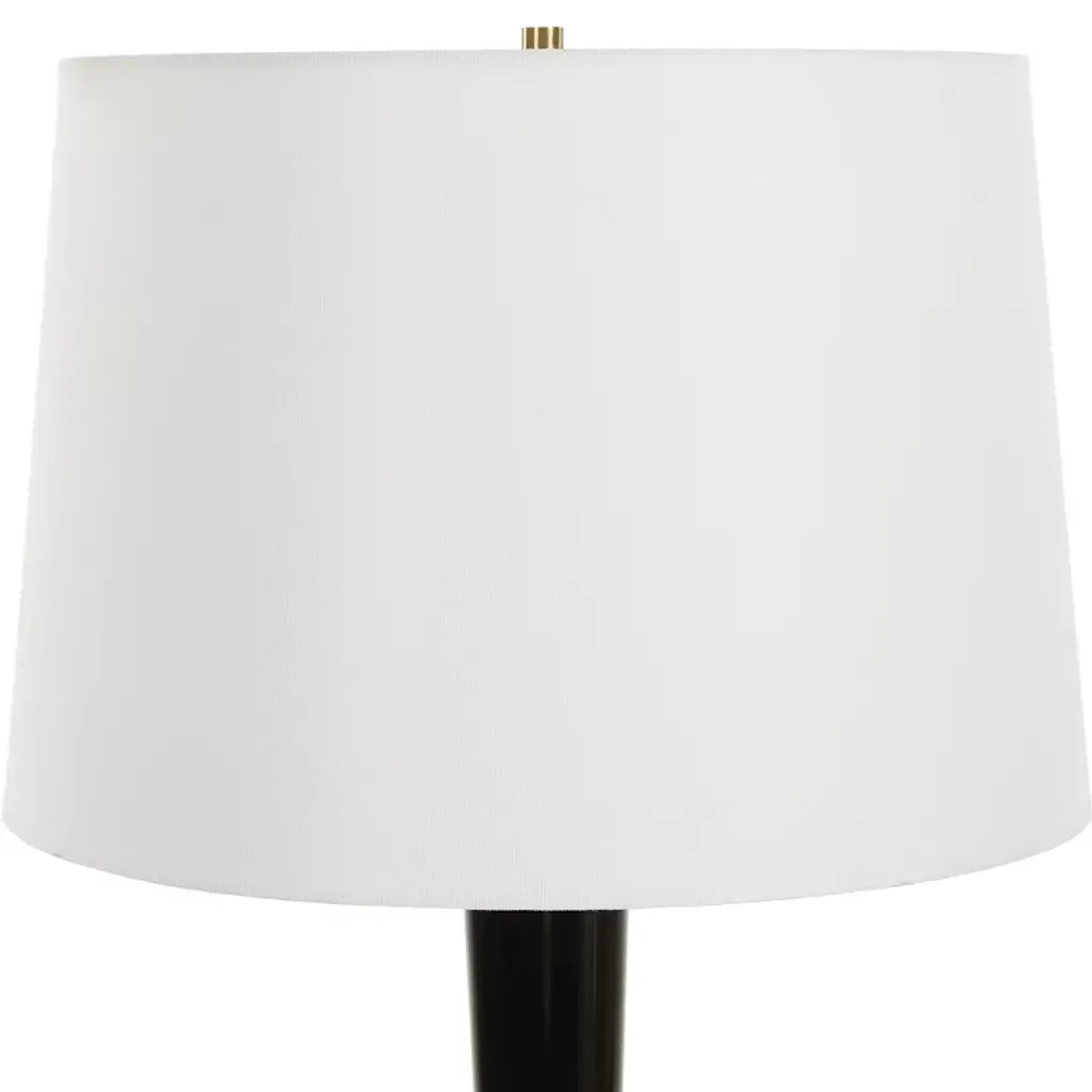 Uttermost 30286 Brielle Polished Black Ceramic Table Lamp With Brass Accents And White Linen Hardback Shade