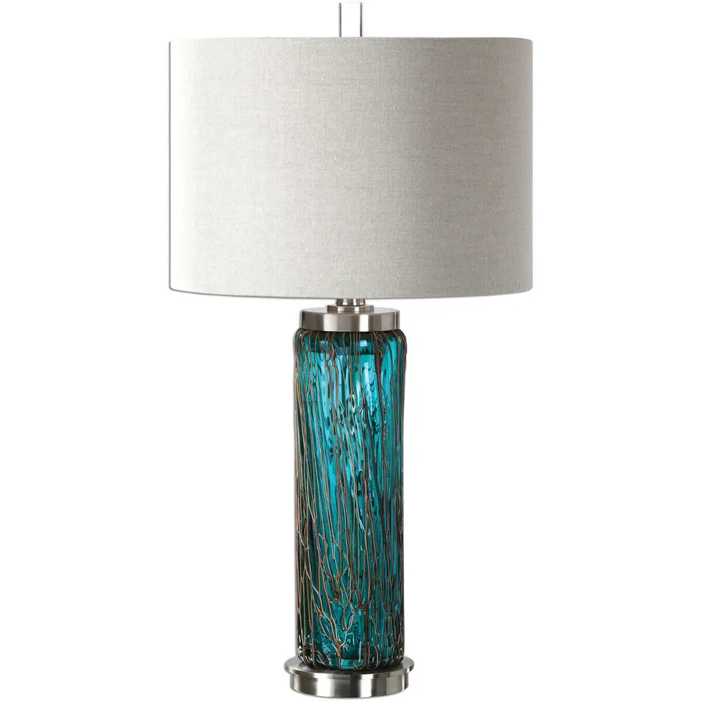 Uttermost Almanzora Blue Glass Lamp – Elegant Glass And Metal Table Lamp