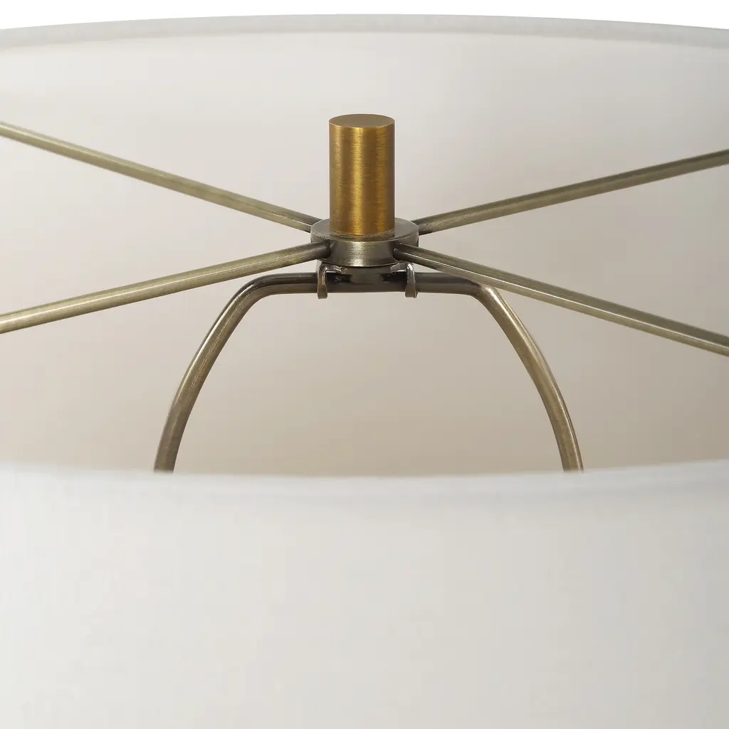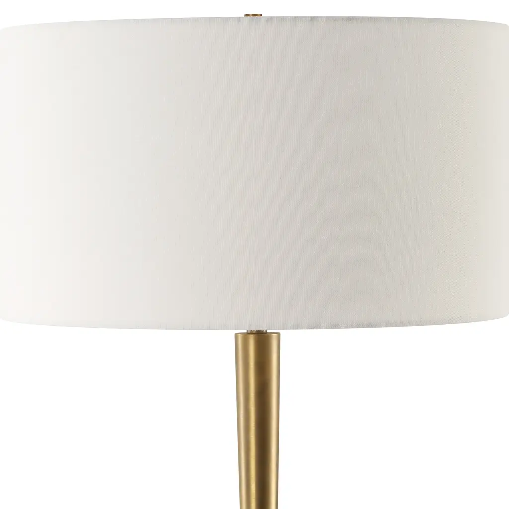 This table lamp showcases a fusion of refined white marble and plated antique brass. With its elegant fluted-style neck, this lamp adds timeless sophistication to any space. The round hardback drum shade is a casual white linen fabric.Uttermost's lamps combine premium quality materials with unique high-style design.With the advanced product engineering and packaging reinforcement, Uttermost maintains some of the lowest damage rates in the industry. Each product is designed, manufactured and packaged with shipping in mind. Features: Set include: One (1) Table Lamp Collection: Avola Designer: Carolyn Kinder Color: White Material: Iron, Marble, Fabric Finish/Frame: Brass Shade: Round drum hardback shade Wattage: 100W Socket Type: On-off Made in China No assembly required Dimensions: Dimensions: 16 inches deep x 16 inches wide x 32 inches high Item weight: 18 lbs This product will be shipped to you in one (1) box. Warning: This product can expose you to chemicals including nickel which is known to the State of California to cause cancer. For more information, go to www.P65Warnings.ca.gov/furniture.