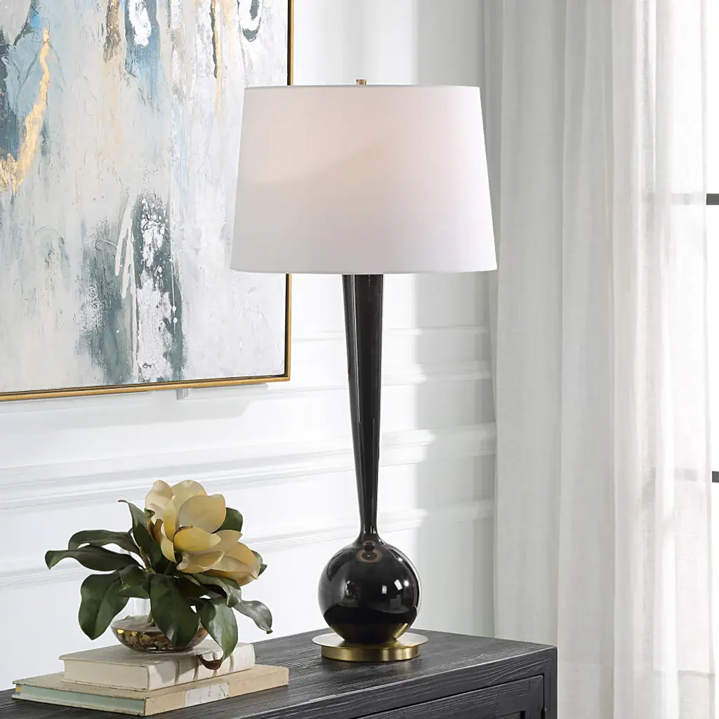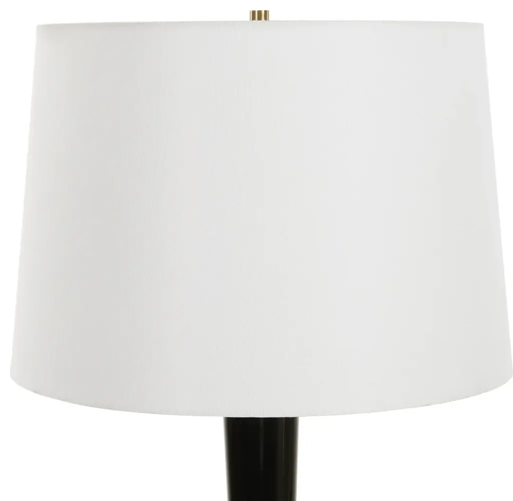 A Nod To 1960''s Mod Design, The Brielle Table Lamp Features A Modern Ceramic Silhouette Finished In A Polished Black Glaze That''s Accented With Plated Brushed Brass Details. The Slightly Tapered Round Hardback Shade Is Covered In A Crisp White Linen Fabric.