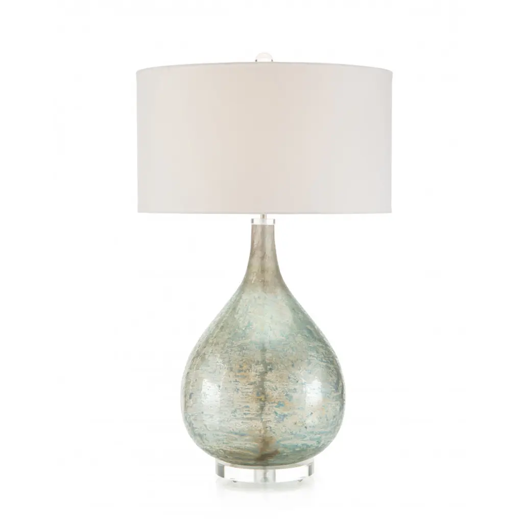 The Uttermost Celinda Blue Gray Glass Lamp offers understated sophistication with its softly tinted glass body and clean-lined design. Its airy, modern appeal makes it the perfect accent for both casual and elegant settings. Key Features: Perfect dimensions: Measures 14"W × 15.5"D × 24.75"H – ideal for nightstands or end tables.Soft glow: Fabric shade diffuses warm light, creating a cozy atmosphere.Lightweight build: Only 6 lbs for easy placement and styling.Versatile style: Complements modern, coastal, and transitional interiors.Uttermost quality: Designer craftsmanship ensures durability and style.