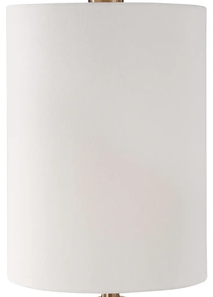 Finished In A Crackled Gray Glaze, This Ceramic Table Lamp Echoes Mid-century And Contemporary Styles. The Base Of This Piece Showcases An Embossed Repeating Geometric Design, Accented With Antique Brass Plated Details. The Round Hardback Shade Is A White Linen Fabric With Natural Slubbing. Uttermost''s Lamps Combine Premium Quality Materials With Unique High-style Design. With The Advanced Product Engineering And Packaging Reinforcement, Uttermost Maintains Some Of The Lowest Damage Rates In The Industry. Each Product Is Designed, Manufactured And Packaged With Shipping In Mind. DimensionsDepth: 11 in. Width: 11 in. Height: 30 in.