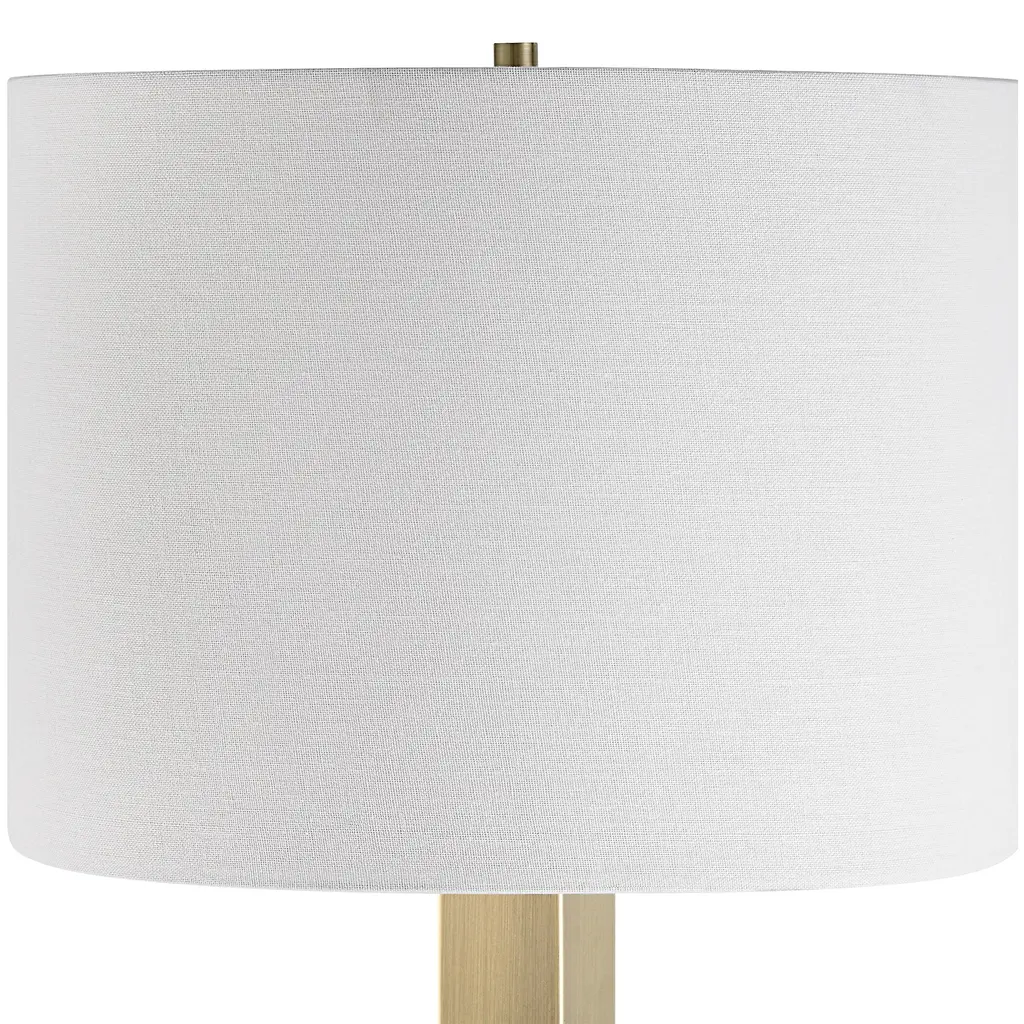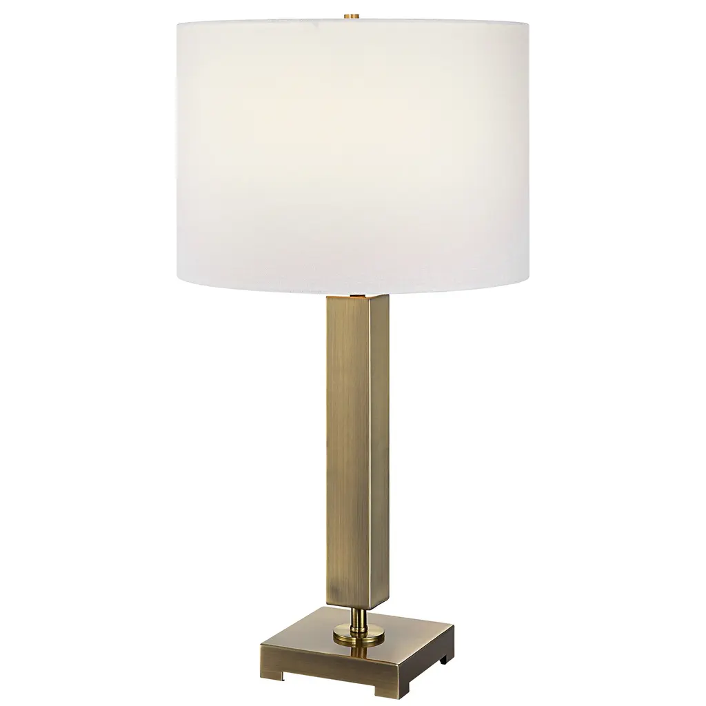 Uttermost's lamps combine premium quality materials with unique high-style design. With the advanced product engineering and packaging reinforcement, uttermost maintains some of the lowest damage rates in the industry. Each product is designed, manufactured and packaged with shipping in mind. This sophisticated table lamp showcases a streamlined metal column base finished in antique brass. The round hardback shade is covered in white linen fabric. Features: Set includes: One (1) table lamp Materials: Metal (95%), fabric (5%) Finish: Antique brass Shade color: White Shade: Round hardback Wattage: 150W Bulb quantity: 1 Bulb type: TYPE A Socket type: 3-WAY Voltage: 110 V Dimensions: Table lamp: 27 inches high x 14 inches wide x 14 inches deep Shade: 10 inches high x (14 x 14) inches top x (14 x 14) inches bottom This product will ship to you in one (1) box. WARNING: This product can expose you to chemicals including titanium dioxide which is known to the State of California to cause cancer. For more information, go to www.P65Warnings.ca.gov/furniture.