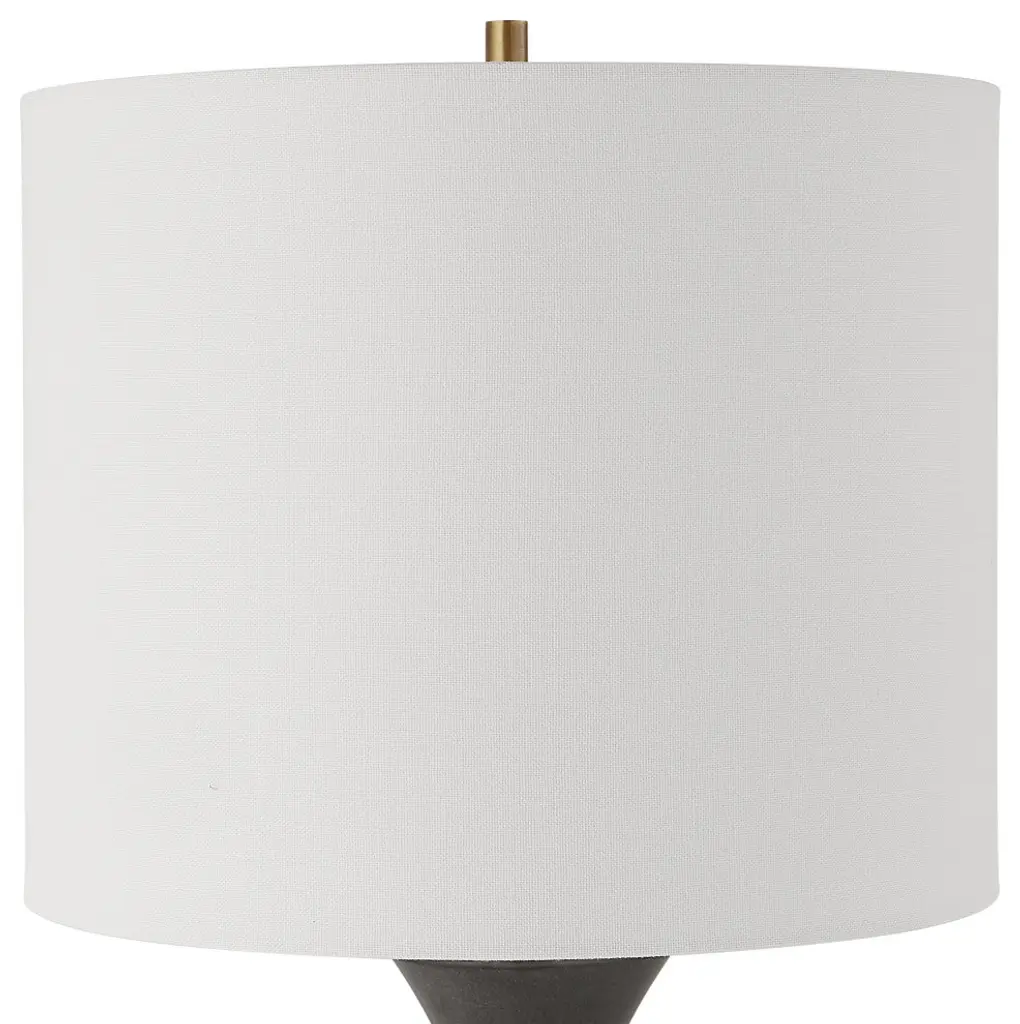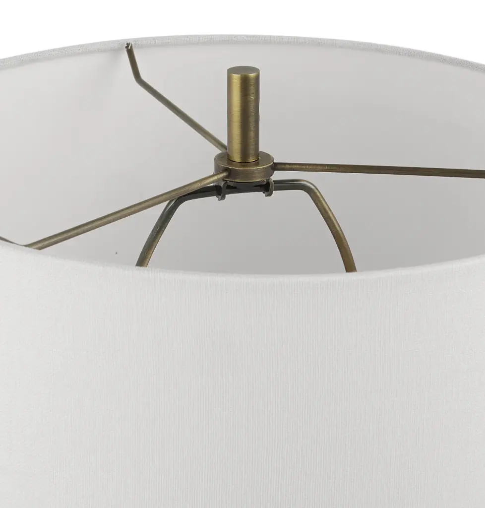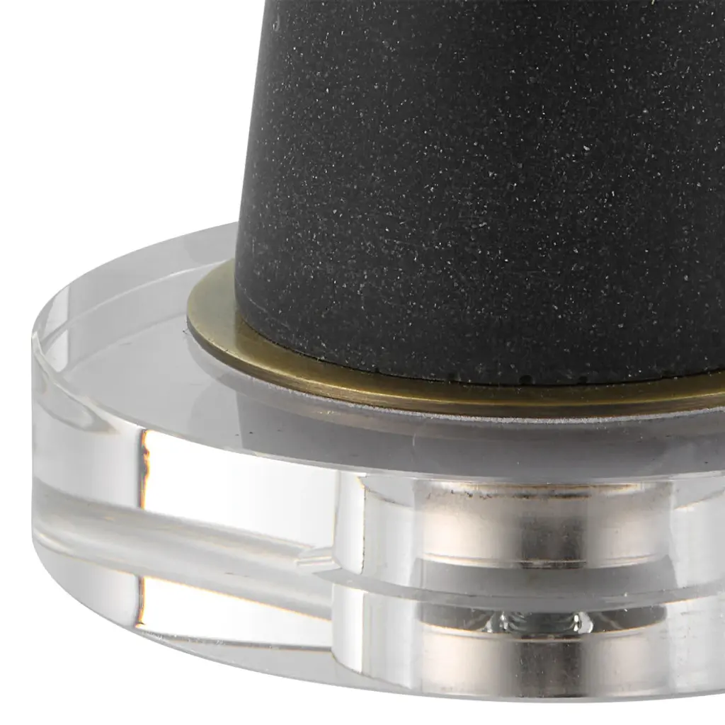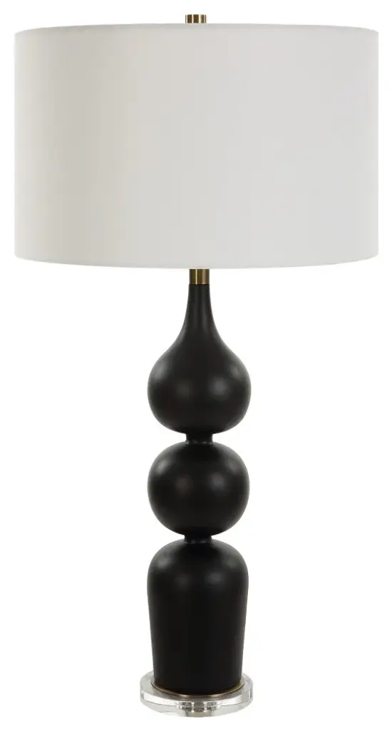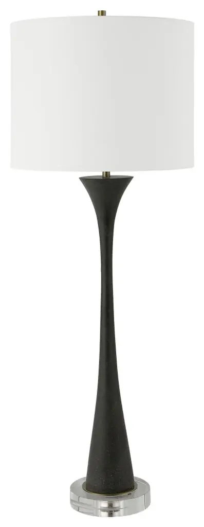 Showcasing A Classic Trumpet Shape, This Buffet Lamp Is Handcrafted From A Man-made Black Stone, Displayed On A Thick Crystal Foot, Paired With Brushed Brass Plated Accents. A White Fabric Shade Completes The Piece. Uttermost''s Lamps Combine Premium Quality Materials With Unique High-style Design. With The Advanced Product Engineering And Packaging Reinforcement, Uttermost Maintains Some Of The Lowest Damage Rates In The Industry. Each Product Is Designed, Manufactured And Packaged With Shipping In Mind. DimensionsDepth: 12 in. Width: 12 in. Height: 34 in.