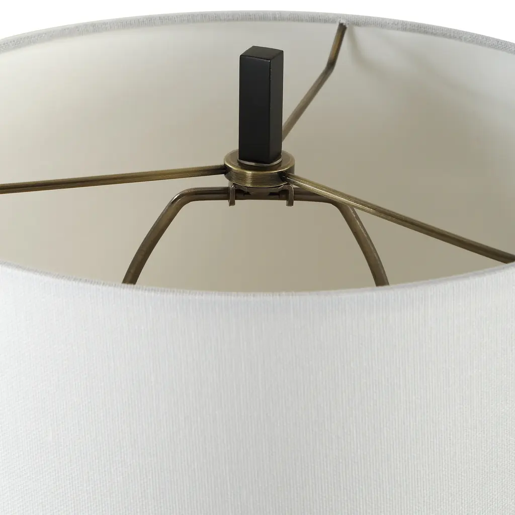 This updated traditional buffet lamp is finished in satin black with a luxurious velvet-like texture that exudes sophistication and contemporary elegance, displayed on a sleek black marble foot, accented with plated antique brass details. The round hardback drum shade is covered in a crisp white linen fabric.Uttermost's lamps combine premium quality materials with unique high-style design.With the advanced product engineering and packaging reinforcement, Uttermost maintains some of the lowest damage rates in the industry. Each product is designed, manufactured and packaged with shipping in mind. Features: Set include: One (1) Buffet Lamp Collection: Hightower Designer: Carolyn Kinder Color: Satin black Material: Marble, Iron, Resin, Fabric Finish/Frame: Black Shade: Round drum hardback shade Wattage: 150W Socket Type: 3-way Made in China No assembly required Dimensions: Dimensions: 11 inches deep x 11 inches wide x 38 inches high Item weight: 6 lbs This product will be shipped to you in one (1) box. Warning: This product can expose you to chemicals including nickel which is known to the State of California to cause cancer. For more information, go to www.P65Warnings.ca.gov/furniture.