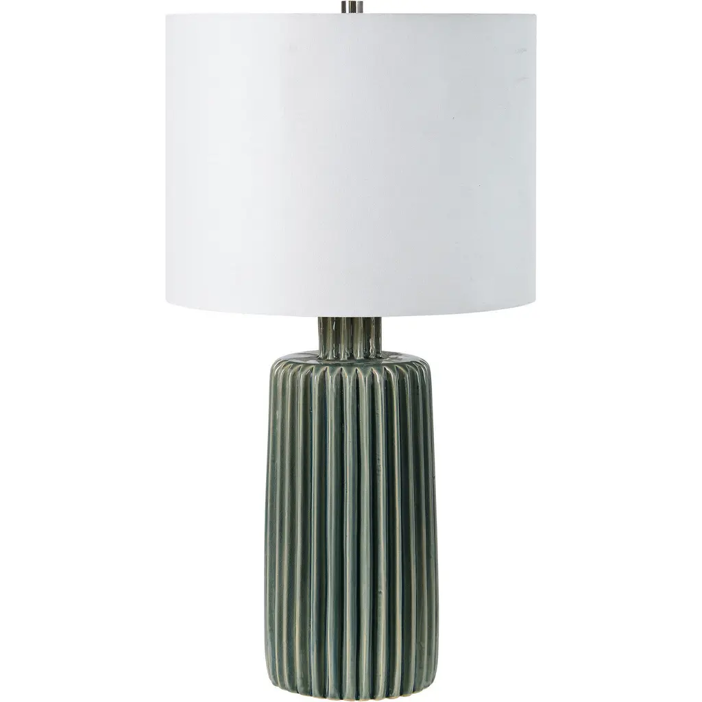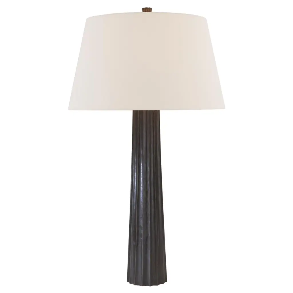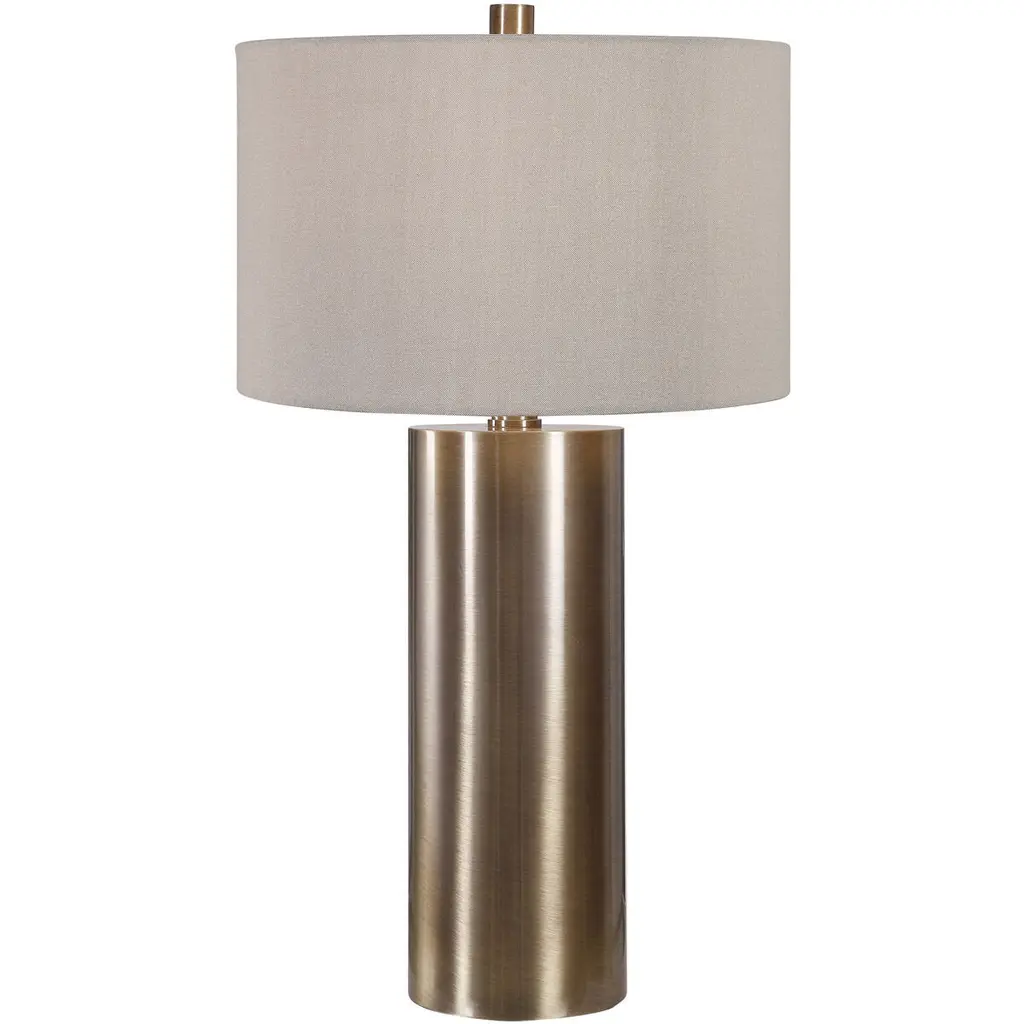 This Table Lamp Features A Deep Fluted Steel Base Finished In An Aged Gunmetal With Rust Distressing And Brass Plated Edges, For A Rustic Industrial Feel. The Round Hardback Drum Shade Is A White Linen Fabric. Uttermost''s Lamps Combine Premium Quality Materials With Unique High-style Design. With The Advanced Product Engineering And Packaging Reinforcement, Uttermost Maintains Some Of The Lowest Damage Rates In The Industry. Each Product Is Designed, Manufactured And Packaged With Shipping In Mind. DimensionsDepth: 16 in. Width: 16 in. Height: 27. 5 in.