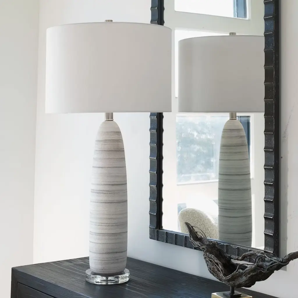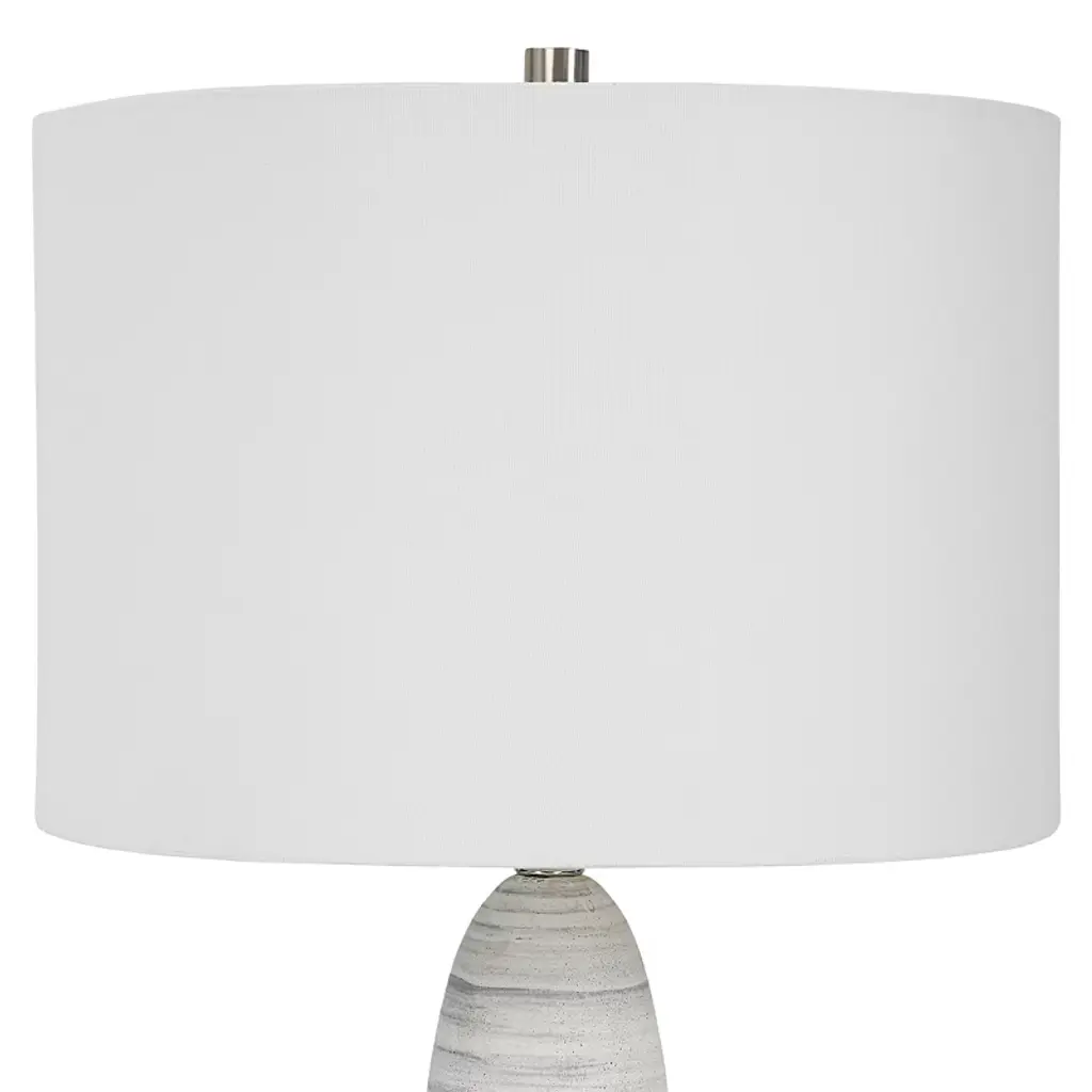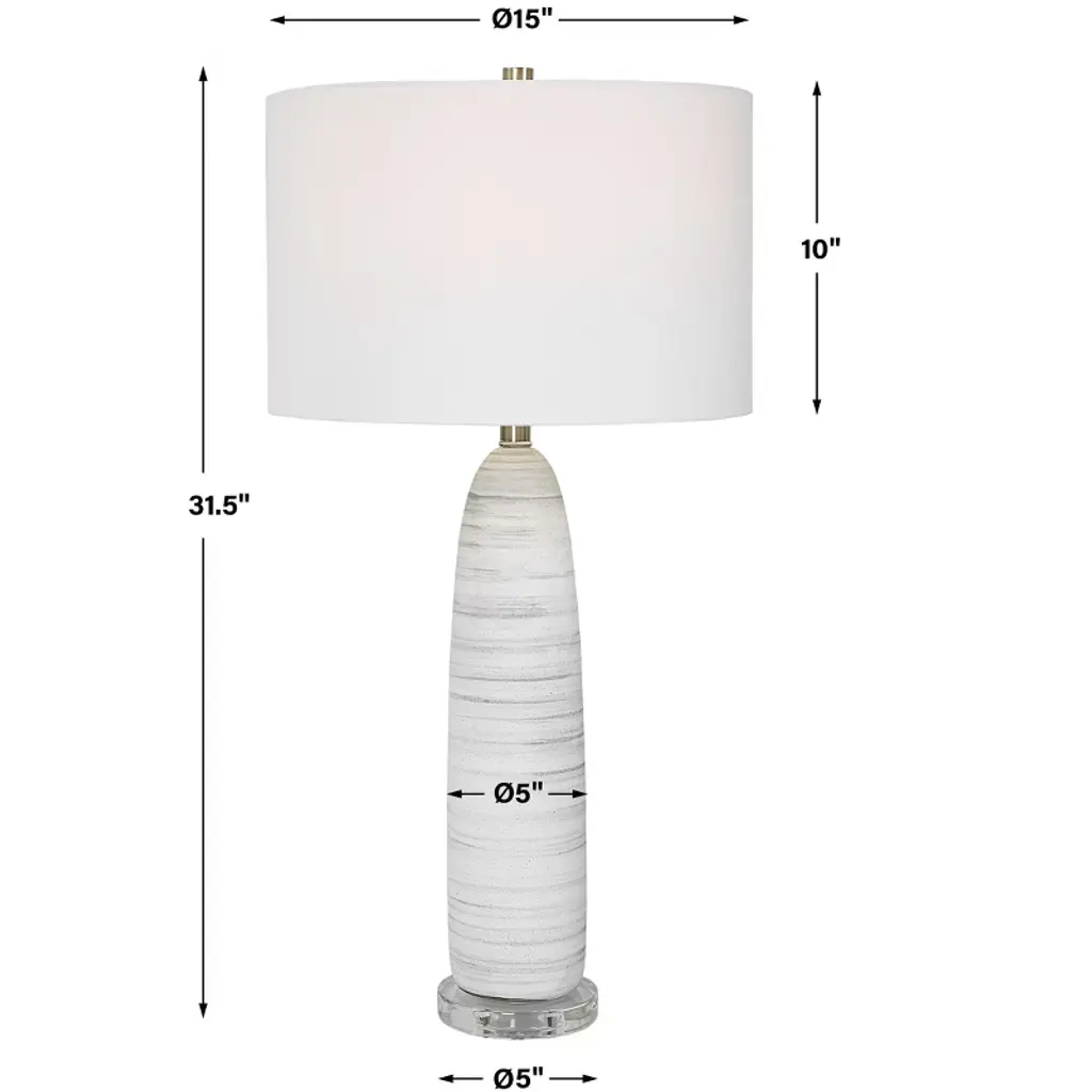 Uttermost Levadia Matte White Table Lamp – Ceramic With Brushed Gray Details & Crystal Foot, 15"x15"x31.5"