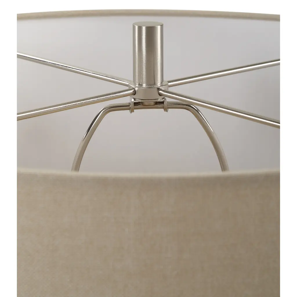The loch table lamp features a ceramic base, embellished with a peacock green and slate glaze, adding a sense of depth and richness to any space. Light rust accents provide a touch of warmth, while plated brushed nickel hardware adds a contemporary edge. The round drum hardback shade is a beige linen fabric. Due to the nature of fired glazes on ceramic lamps, finishes will vary slightly.Uttermost's lamps combine premium quality materials with unique high-style design.With the advanced product engineering and packaging reinforcement, Uttermost maintains some of the lowest damage rates in the industry. Each product is designed, manufactured and packaged with shipping in mind. Features: Set include: One (1) Table Lamp Collection: Loch Designer: Renee Wightman Color: Peacock green Material: Ceramic, Iron, Fabric Shade: Round drum hardback shade Wattage: 150W Socket Type: 3-way Made in China No assembly required Dimensions: Dimensions: 17 inches deep x 17 inches wide x 28.25 inches high Item weight: 7.94 lbs This product will be shipped to you in one (1) box. Warning: This product can expose you to chemicals including nickel which is known to the State of California to cause cancer. For more information, go to www.P65Warnings.ca.gov/furniture.