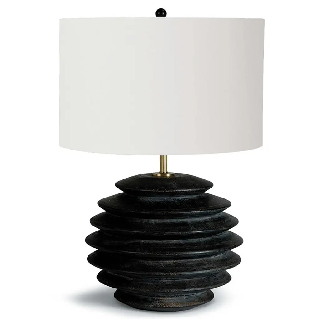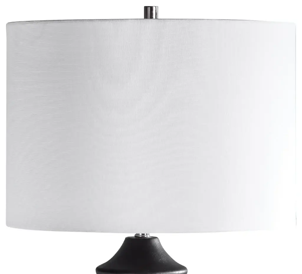 Showcasing A Modern Lodge Style, This Table Lamp Features A Carved Wood Base Finished In A Rustic Black Stain Exposing Subtle Wood Grain. The Lamp Is Paired With A Round Hardback Drum Shade In A White Linen Fabric. Uttermost''s Lamps Combine Premium Quality Materials With Unique High-style Design. With The Advanced Product Engineering And Packaging Reinforcement, Uttermost Maintains Some Of The Lowest Damage Rates In The Industry. Each Product Is Designed, Manufactured And Packaged With Shipping In Mind. DimensionsDepth: 16 in. Width: 16 in. Height: 30 in.
