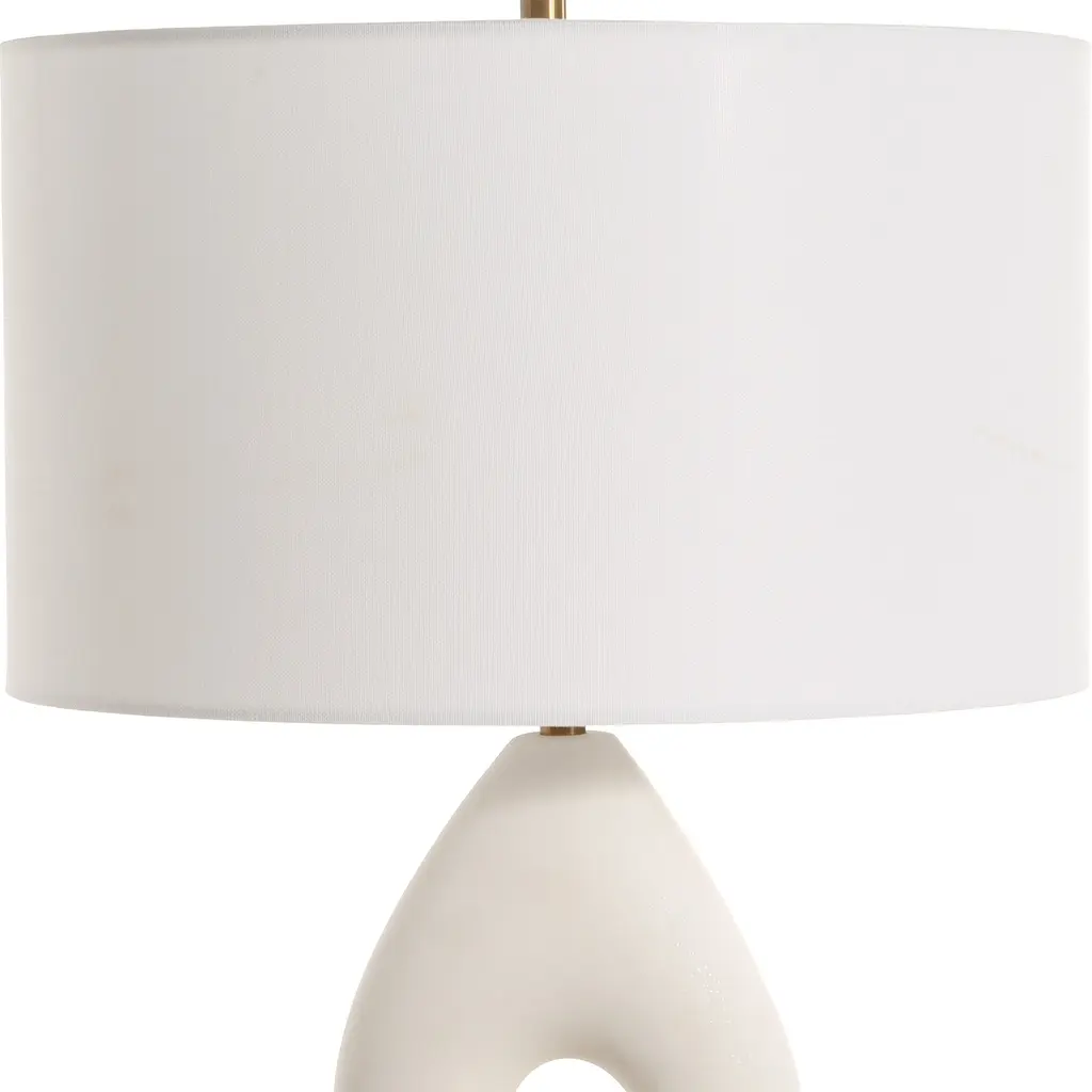 The Meridian Table Lamp Features A Unique Infinity Shape That Adds A Modern Flair To Classic Design. Its Rich Ivory Man-made Stone That Accurately Replicates The Look Of Thassos Marble Is Complemented By A Plated Antique Brass Foot And Matching Hardware. The Lamp Is Paired With A Hardback Drum Shade Covered In A White Linen Fabric. Uttermost's Lamps Combine Premium Quality Materials With Unique High-style Design. With The Advanced Product Engineering And Packaging Reinforcement, Uttermost Maintains Some Of The Lowest Damage Rates In The Industry. Each Product Is Designed, Manufactured And Packaged With Shipping In Mind. Features: Include: One (1) Table Lamp Collection: Meridian Material: Resin, Iron , Fabric Made in China Dimentions: 17 W x 17 D x 29 H Item weight: 11 lbs This product will ship to you in one (1) box. Accessories pictured are NOT included. WARNING: This product can expose you to chemicals including nickel which is known to the State of California to cause cancer. For more information, go to www.p65warnings.ca.gov/furniture.
