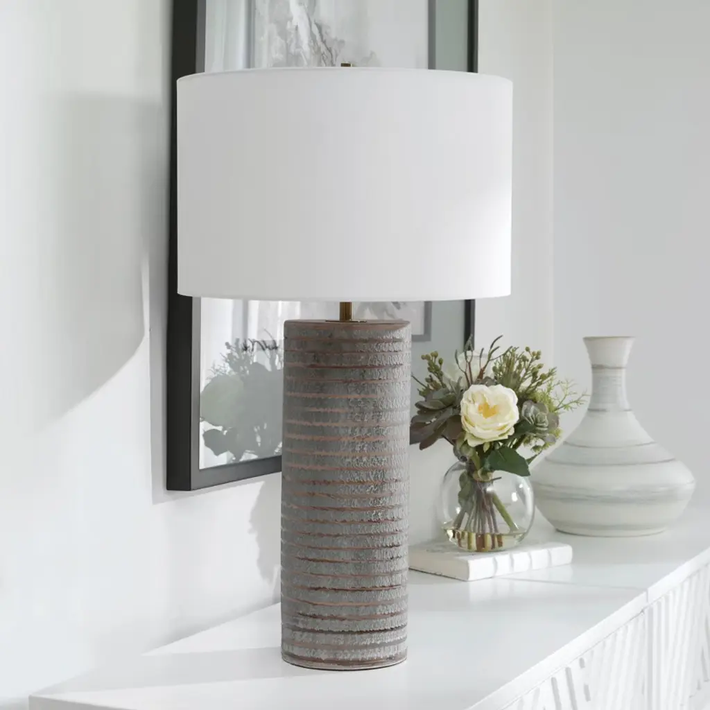 Uttermost Monolith Gray Table Lamp – Chiseled Ceramic With Frosted Pewter & Sepia, 28.5"h