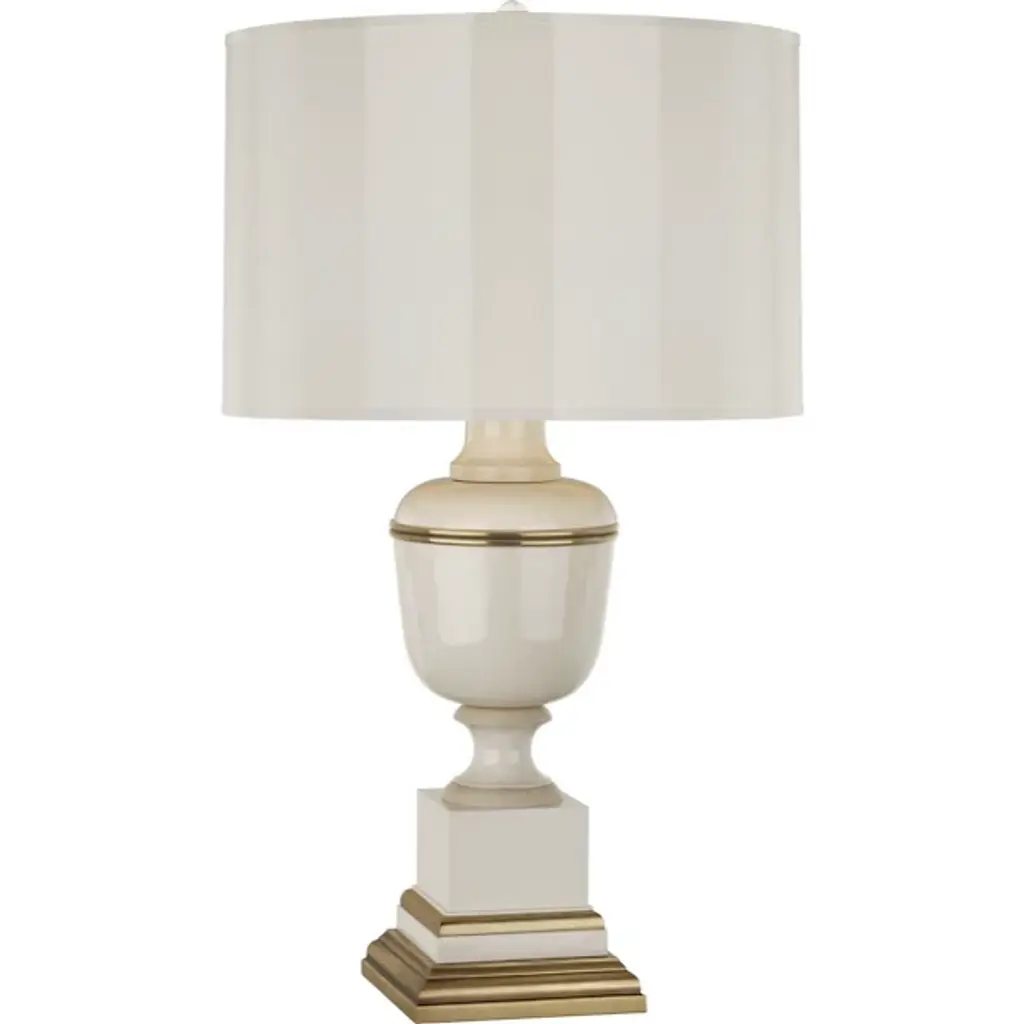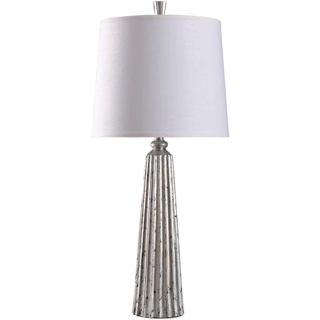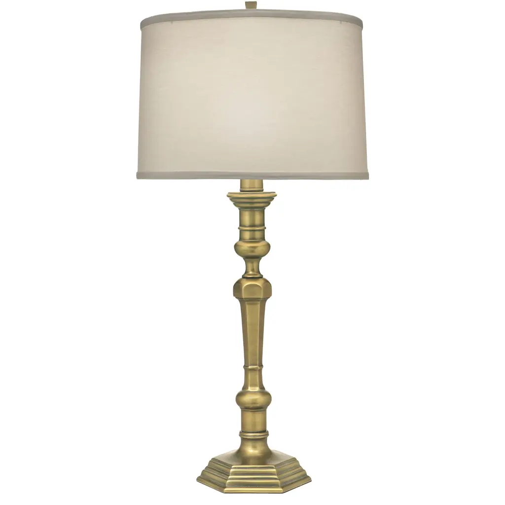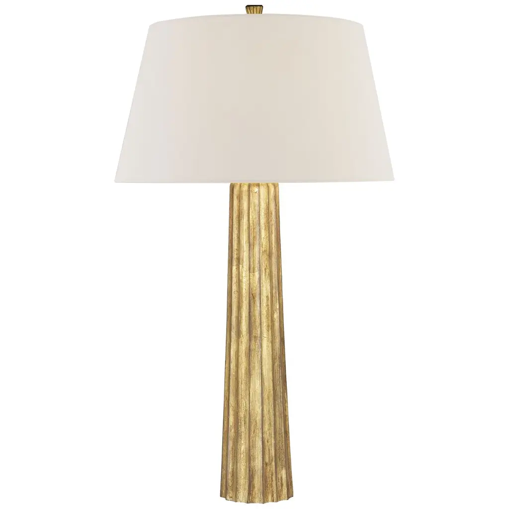 Uttermost's lamps combines premium quality materials with unique high-style design. With the advanced product engineering and packaging reinforcement, Uttermost maintains some of the lowest damage rates in the industry. Each product is designed, manufactured and packaged with shipping in mind. This drapery inspired design is hand finished in a heavily antiqued metallic gold. The round hardback drum shade is a white linen fabric with light slubbing. Features: Set includes: One (1) table lamp Materials: Resin, Steel and Linen Fabric Finish: Antiqued Metallic Gold and White Special Features: Designer: Billy Moon Voltage: 110 Number of lights: 1 Shade description: Round hardback drum Wattage: 150W Bulb quantity: 1 Bulb type: Type A Socket type: 3-way Dimensions: Table lamp dimensions: 37 inches high x 11 inches wide x 11 inches deep Shade dimensions: 11 inches top diameter x 11 inches bottom diameter x 12 inches high This product will ship to you in one (1) box. Accessories pictured are NOT included.