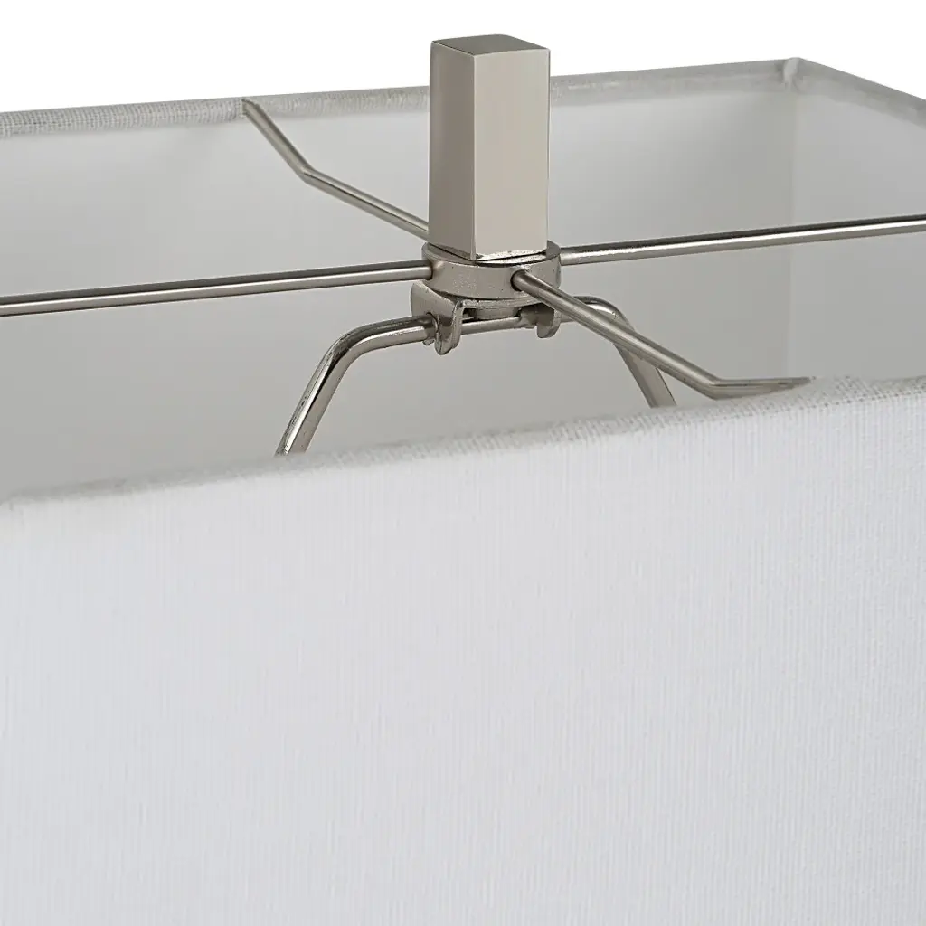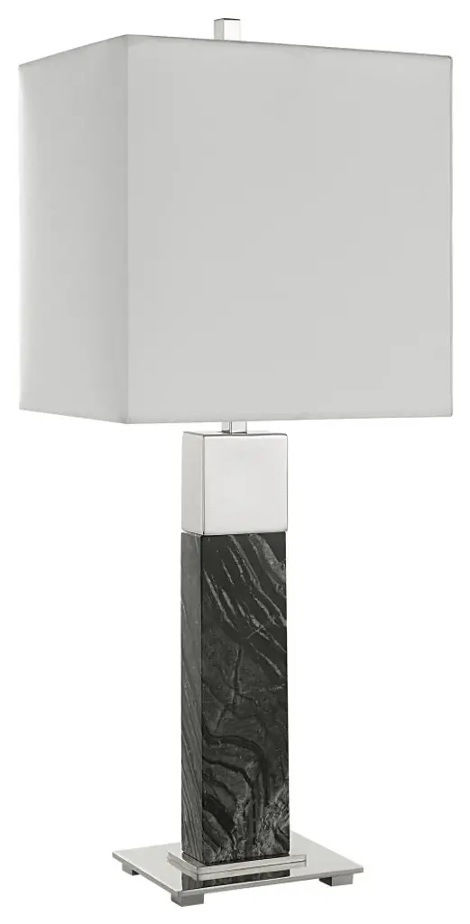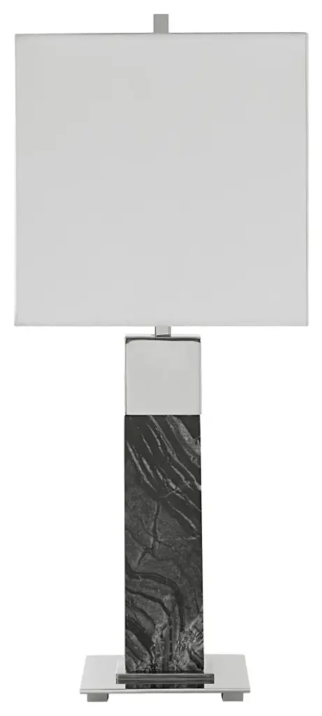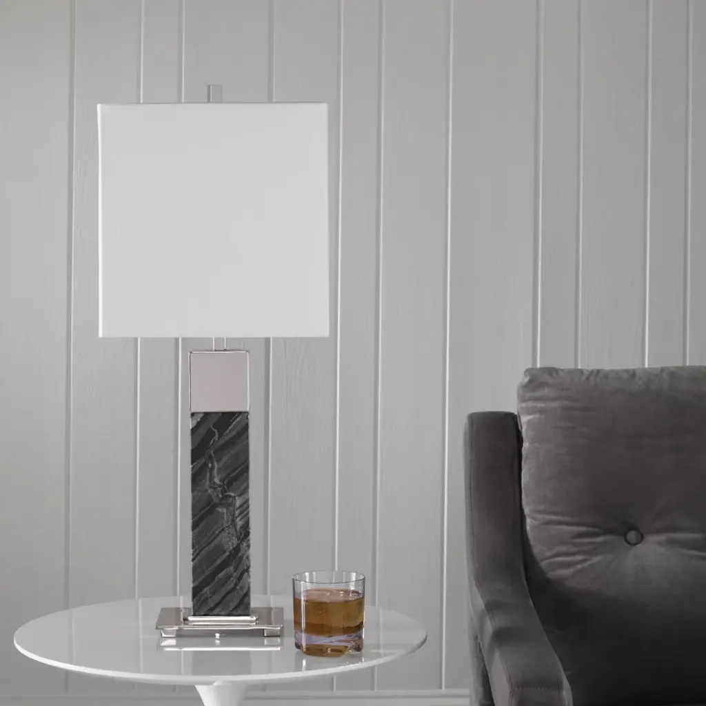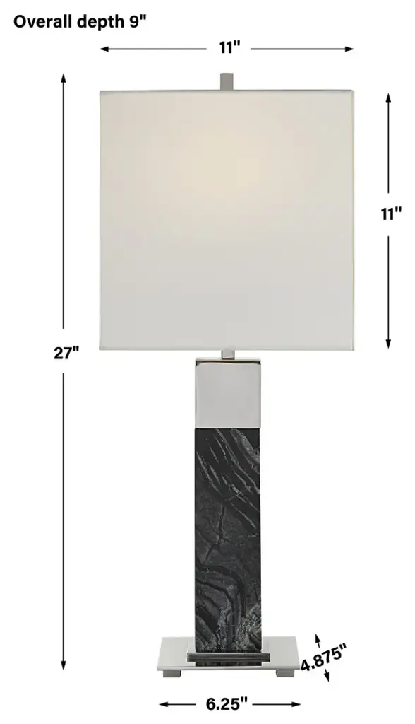 The Perfect Blend Of Classic And Contemporary Looks, This Table Lamp Displays An Elegant Natural Black Marble Column With Gray And White Veining Accented By Polished Nickel Plated Finishes. The Hardback Square Shade Is Covered In A Crisp White Linen Fabric. Uttermost''s Lamps Combine Premium Quality Materials With Unique High-style Design. With The Advanced Product Engineering And Packaging Reinforcement, Uttermost Maintains Some Of The Lowest Damage Rates In The Industry. Each Product Is Designed, Manufactured And Packaged With Shipping In Mind. DimensionsDepth: 9 in. Width: 11 in. Height: 27 in.