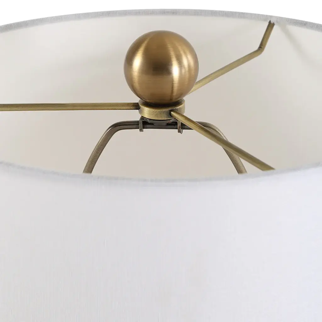 Where Elegance Meets Modern Sophistication, The Sienna Buffet Lamp Features A Caramel Brown, Seeded Glass Base. The Design Is Elevated With A Thick Crystal Foot And Accents Of Plated Brushed Antique Brass Hardware, Adding A Touch Of Refined Luxury To Any Setting. The Round Drum Hardback Shade Is Covered In A White Linen Fabric.