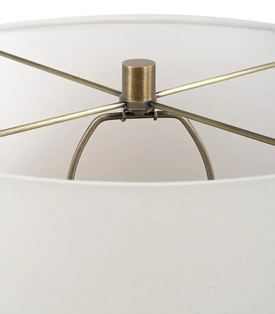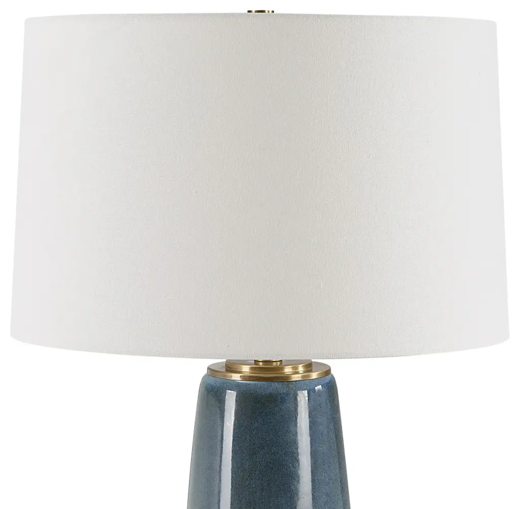 This Ceramic Table Lamp Showcases A Deep Blue Glaze With Rustic Undertones, Accented With Plated Antique Brass Details. The Slightly Tapered Round Hardback Shade Is A Casual White Linen Fabric. Due To The Nature Of Fired Glazes On Ceramic Lamps, Finishes Will Vary Slightly.