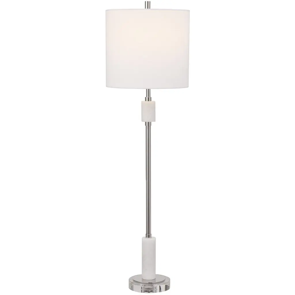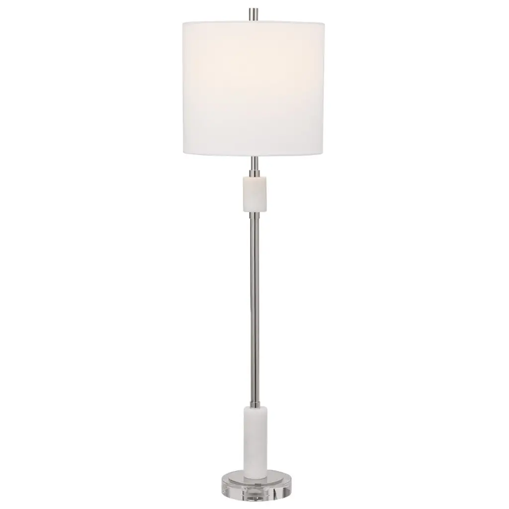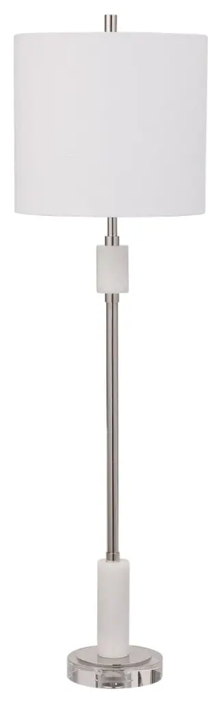 Showcasing A Transitional Elegance, This Buffet Lamp Features A Plated Polished Nickel Finish With Sophisticated White Marble Details And A Thick Crystal Foot. The Lamp Is Paired With A White Linen Hardback Drum Shade. Uttermost''s Lamps Combine Premium Quality Materials With Unique High-style Design. With The Advanced Product Engineering And Packaging Reinforcement, Uttermost Maintains Some Of The Lowest Damage Rates In The Industry. Each Product Is Designed, Manufactured And Packaged With Shipping In Mind. DimensionsDepth: 10 in. Width: 10 in. Height: 35 in.