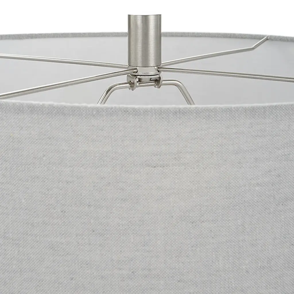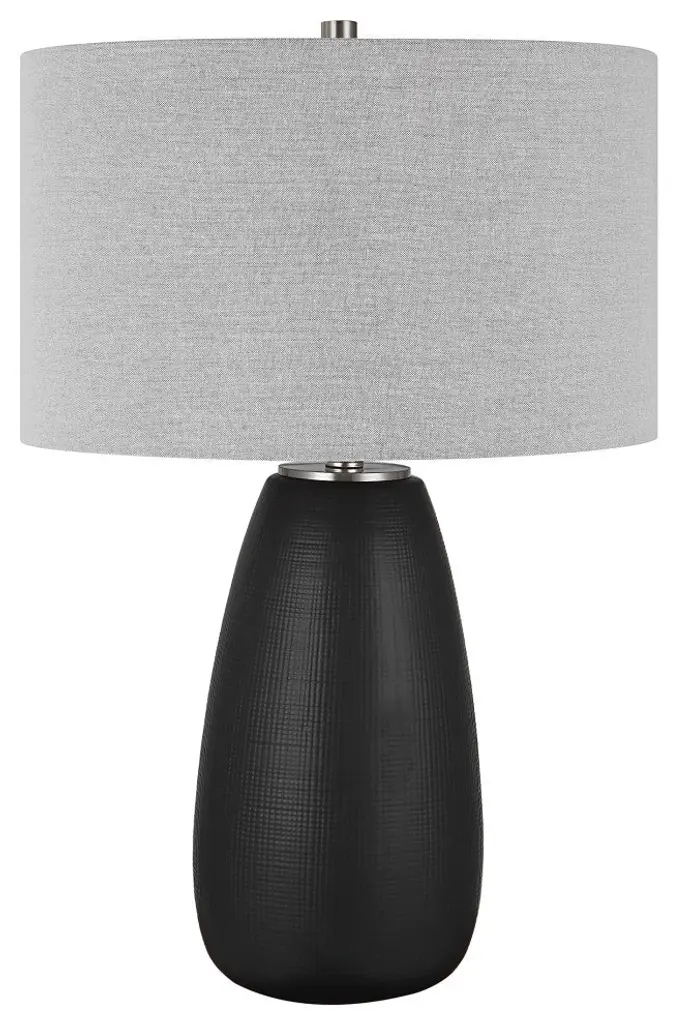 The Twilight Table Lamp Features A Ceramic Base With A Subtle Carved Gridline Texture, Finished In A Satin Black Glaze And Accented By Brushed Nickel Plated Details. The Hardback Drum Shade Is Covered In A Light Gray Linen Fabric. Uttermost''s Lamps Combine Premium Quality Materials With Unique High-style Design. With The Advanced Product Engineering And Packaging Reinforcement, Uttermost Maintains Some Of The Lowest Damage Rates In The Industry. Each Product Is Designed, Manufactured And Packaged With Shipping In Mind. DimensionsDepth: 17 in. Width: 17 in. Height: 26. 5 in.