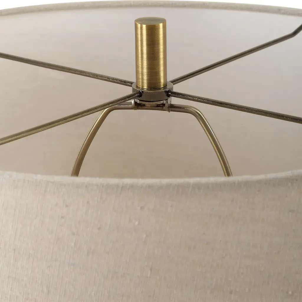 Crafted with a distressed terracotta base, the urbino table lamp exudes warmth and character with its earthy tones and organic texture. Accented by plated brushed antique brass details. The round hardback shade is a natural linen fabric with light slubbing.Uttermost's lamps combine premium quality materials with unique high-style design.With the advanced product engineering and packaging reinforcement, Uttermost maintains some of the lowest damage rates in the industry. Each product is designed, manufactured and packaged with shipping in mind. Features: Set include: One (1) Table Lamp Collection: Urbino Designer: Jim Parsons Color: Brown Material: Steel, Terracotta With Antique, Fabri Finish/Frame: Brass Shade: Round hardback rolled edge Wattage: 150W Socket Type: 3-way Made in China No assembly required Dimensions: Dimensions: 17.5 inches deep x 17.5 inches wide x 22.25 inches high Item weight: 14.1 lbs This product will be shipped to you in one (1) box. Warning: This product can expose you to chemicals including nickel which is known to the State of California to cause cancer. For more information, go to www.P65Warnings.ca.gov/furniture.