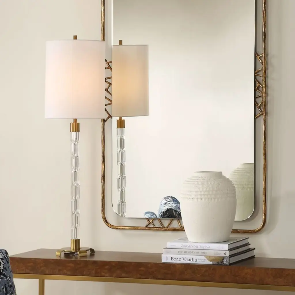 Uttermost York Buffet Lamp-petite Crystal With Embossed Pattern And Brass Accents