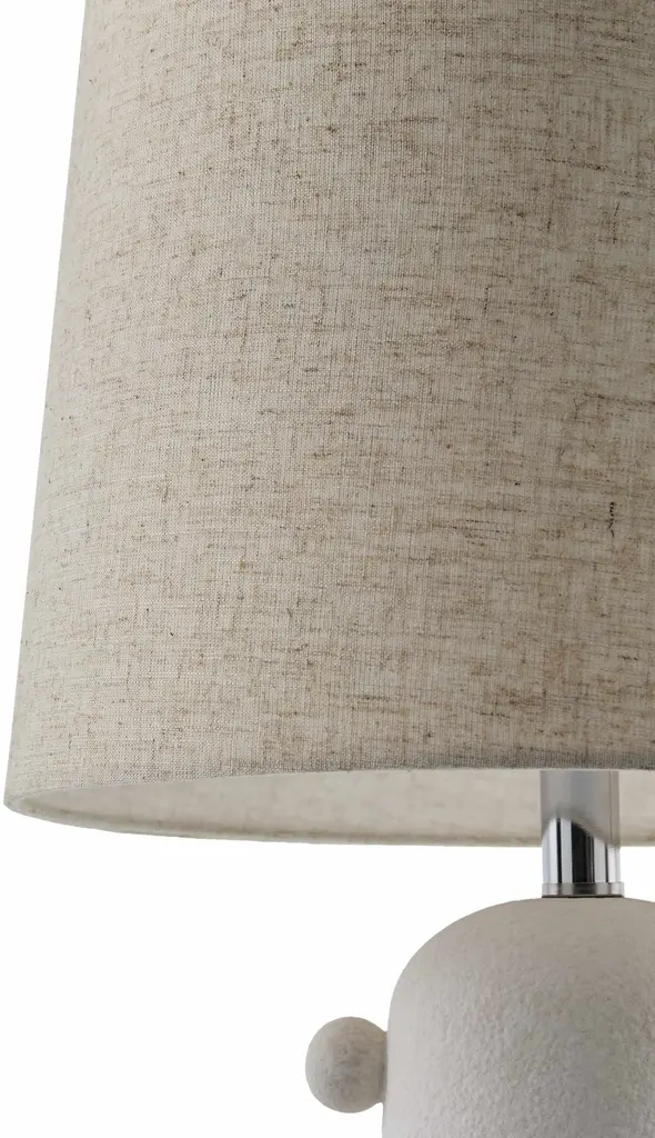 Collection: Valendries Colors: White, Peach, Silver Gray, Metallic - Nickel, Translucent Material: Body: Ceramic / Shade (Outside): Linen, Linen / Shade (Inside): Linen, Plastic / Finial: Iron Styles: Traditional Made In: China Lighting Type: Accent Table Lighting Shade Material: Linen, Linen, Linen, Plastic Shade Color: White, Wheat Cord Length: 6' Switch Type: 3-Way Number of Bulbs: 1 Socket Type: E-26 Bulb Wattage: 150W