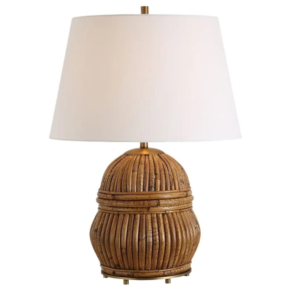 The Valentin Table Lamp is a stunning piece that brings a touch of elegance and warmth to any space. Its beautifully rounded, aged rattan base is enhanced with a warm honey stain, creating a rich and inviting look. This is further complemented by the sophisticated plated antique brass finishes, adding a layer of timeless charm. The lamp is topped with a tapered round hardback shade crafted from crisp white linen fabric, providing a clean and classic contrast to the base. Perfect for adding a cozy yet refined ambiance to your home, the Valentin Table Lamp is a versatile addition to any decor.