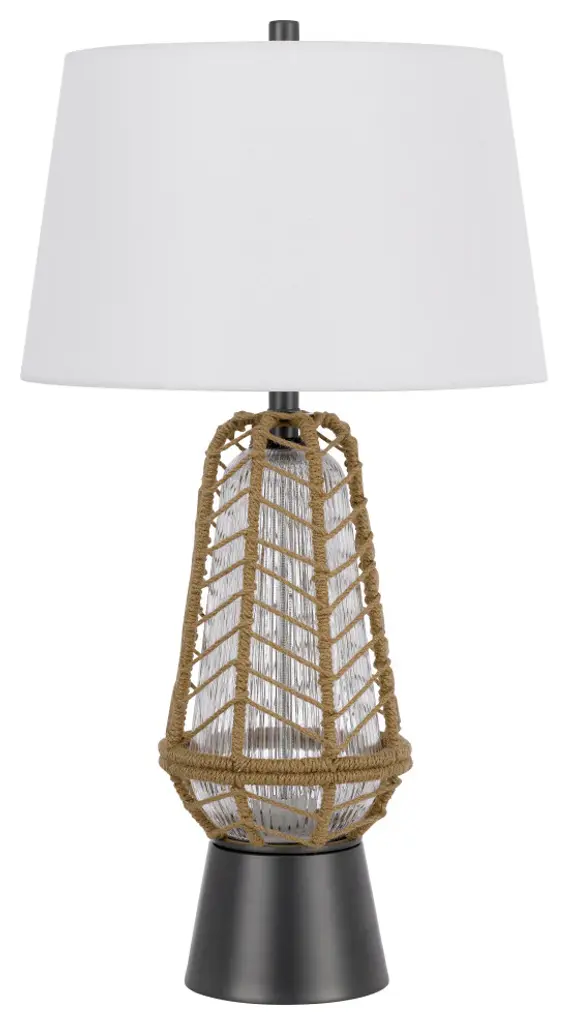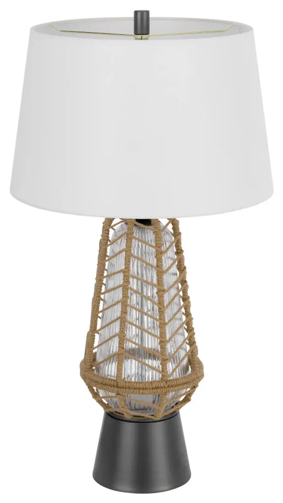 Style your home with this contemporary take on a classic lantern style lamp. It features a clear glass fluted font which has a functional led night light. This lamp is ships complete with a hardback fabric shade and matching finial.