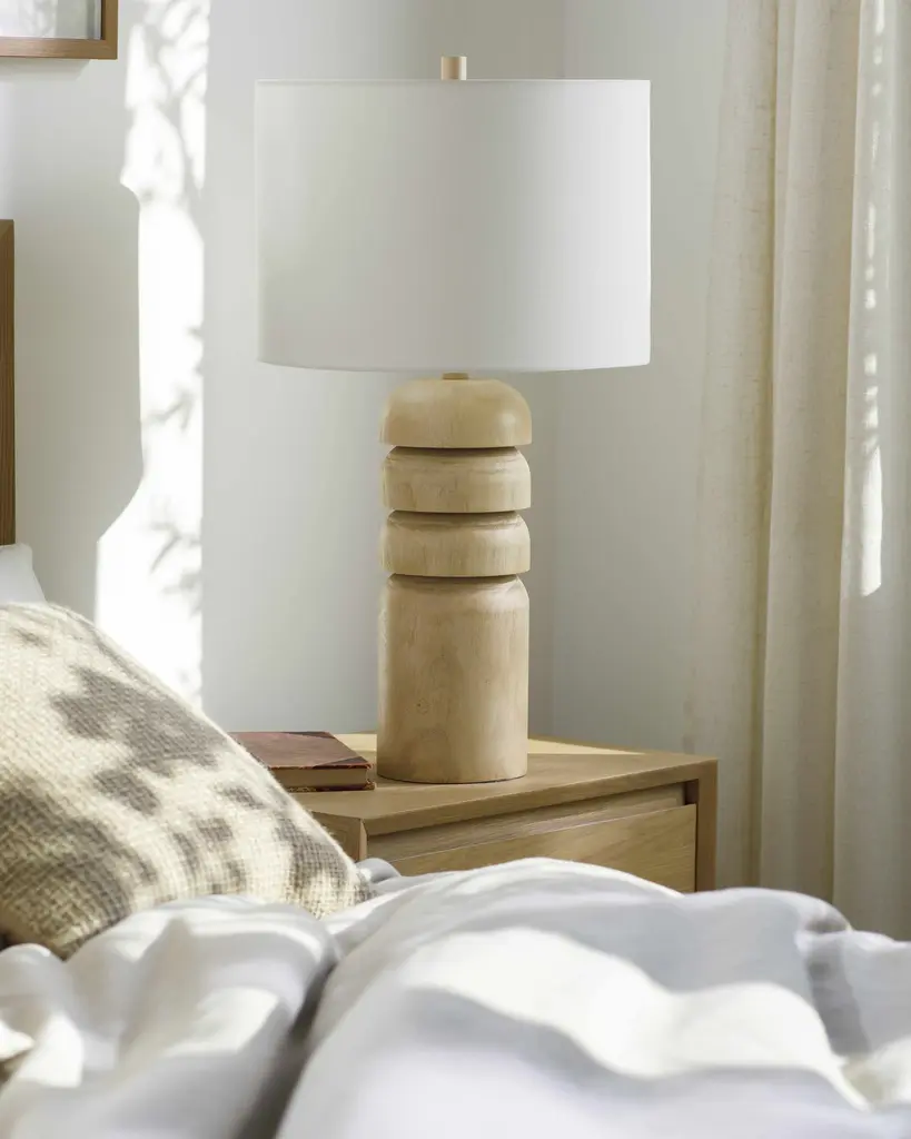 Collection: Vallendar Colors: Off White, Camel, Light Beige Material: Body: Resin,Shade (Outside): Linen,Shade (Inside): Polyester,Finial: Plastic Styles: Transitional,Traditional Made In: China Shade Material: LinenPolyester Shade Color: WhiteWhite Cord Length: 6' Switch Type: 3-Way Number of Bulbs: 1 Socket Type: E-26 Bulb Wattage: 100W