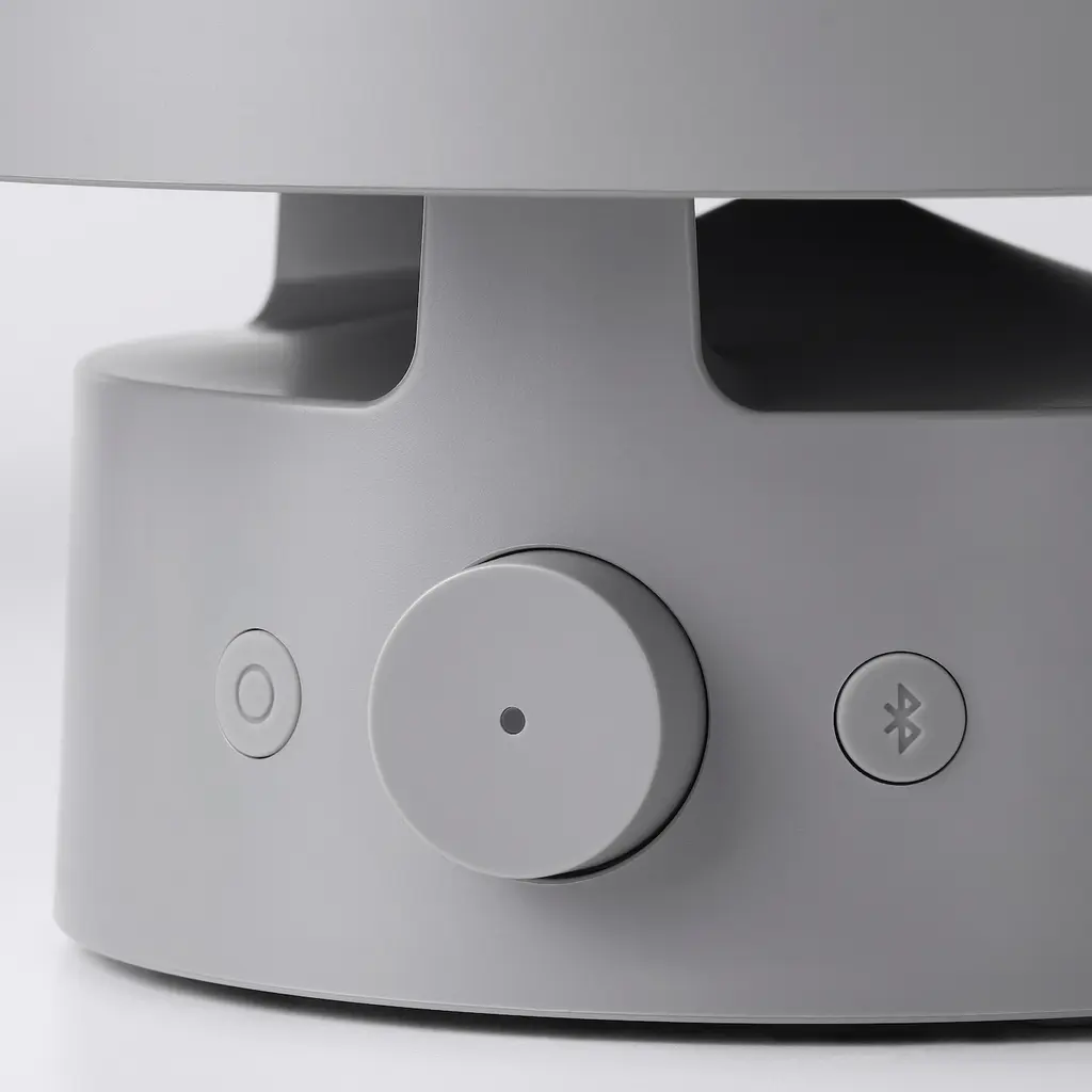 VAPPEBY Bluetooth speaker lamp - outdoor/gray. VAPPEBY Bluetooth speaker for outdoor use has a built-in lamp and is perfect for your garden parties and balcony dinners. 360-degree sound means that the music plays clearly and distinctly, no matter where you and your friends are sitting.