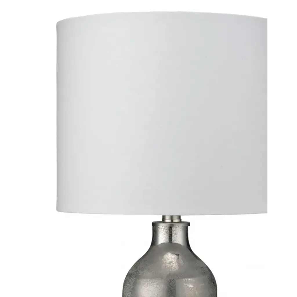 With an air of casual glamour, this ceramic table lamp features an off-white and contrasting pewter glaze. The iridescent sheen meets the off-white glaze to create an imperfect, polished-yet-rustic aesthetic. Lamp is topped with a linen shade that helps emit a calming glow in any room.