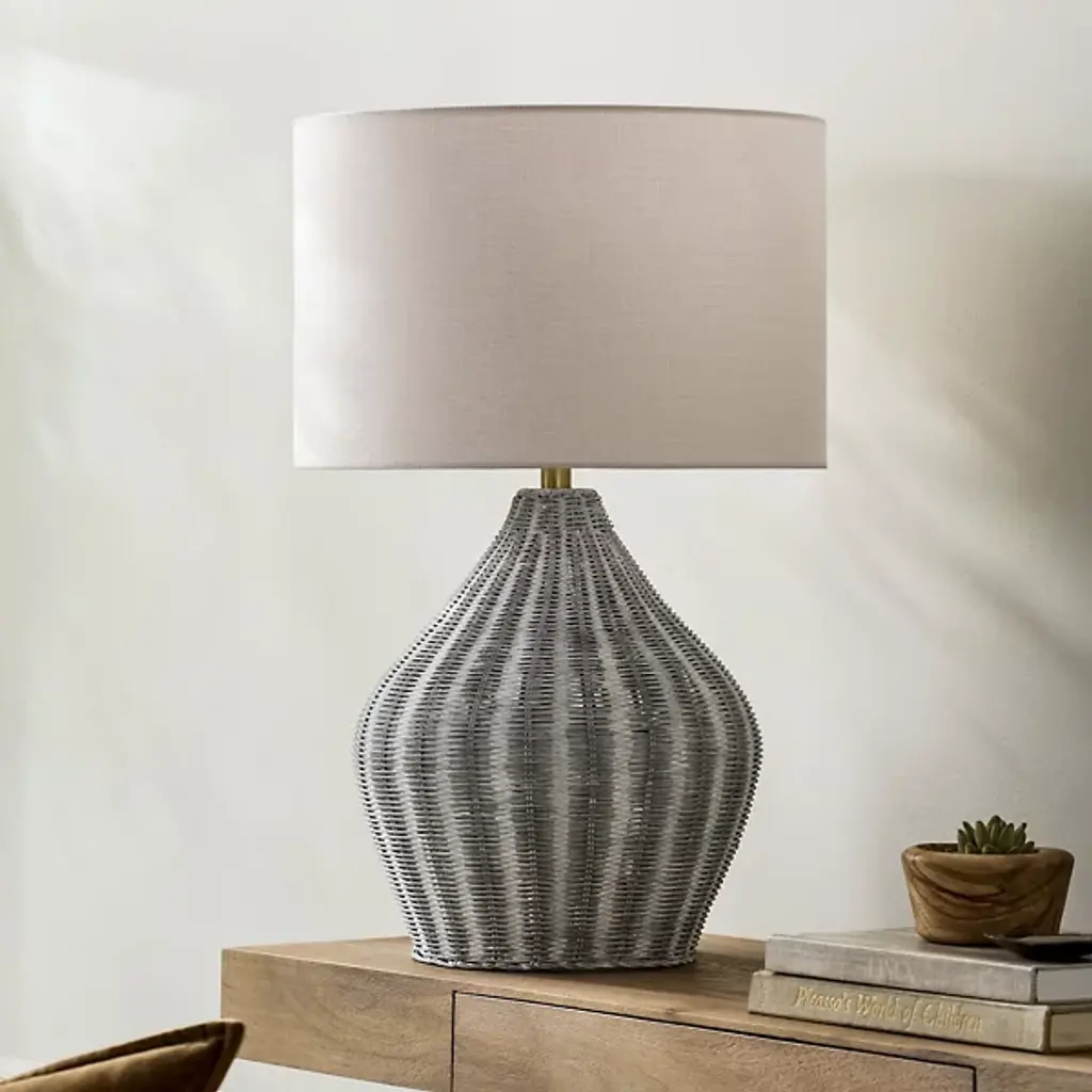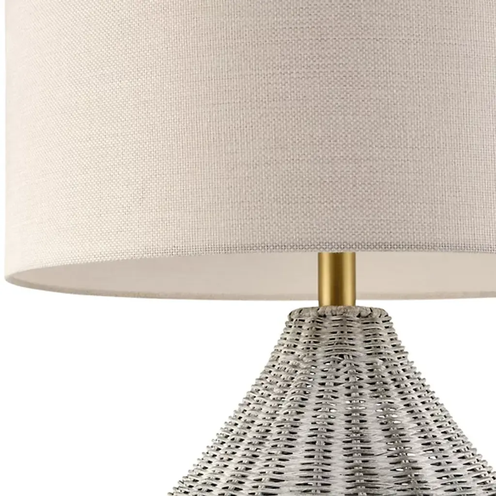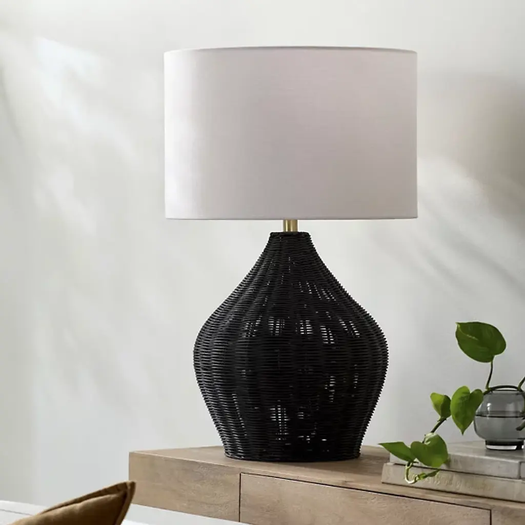 The Velles Table Lamp from Surya brings a natural feel to your home with its carefully woven rattan body. When lit, the lamp creates gentle patterns around it, giving nearby areas more character and interest. The plain linen drum shade sits nicely above the textured base, keeping things balanced. This lamp works nicely on small tables beside couches, next to beds, or in hallway spaces, making its presence known without taking up too much room or attention. You'll find this accent piece easy to use with its simple switch for quick on and off.