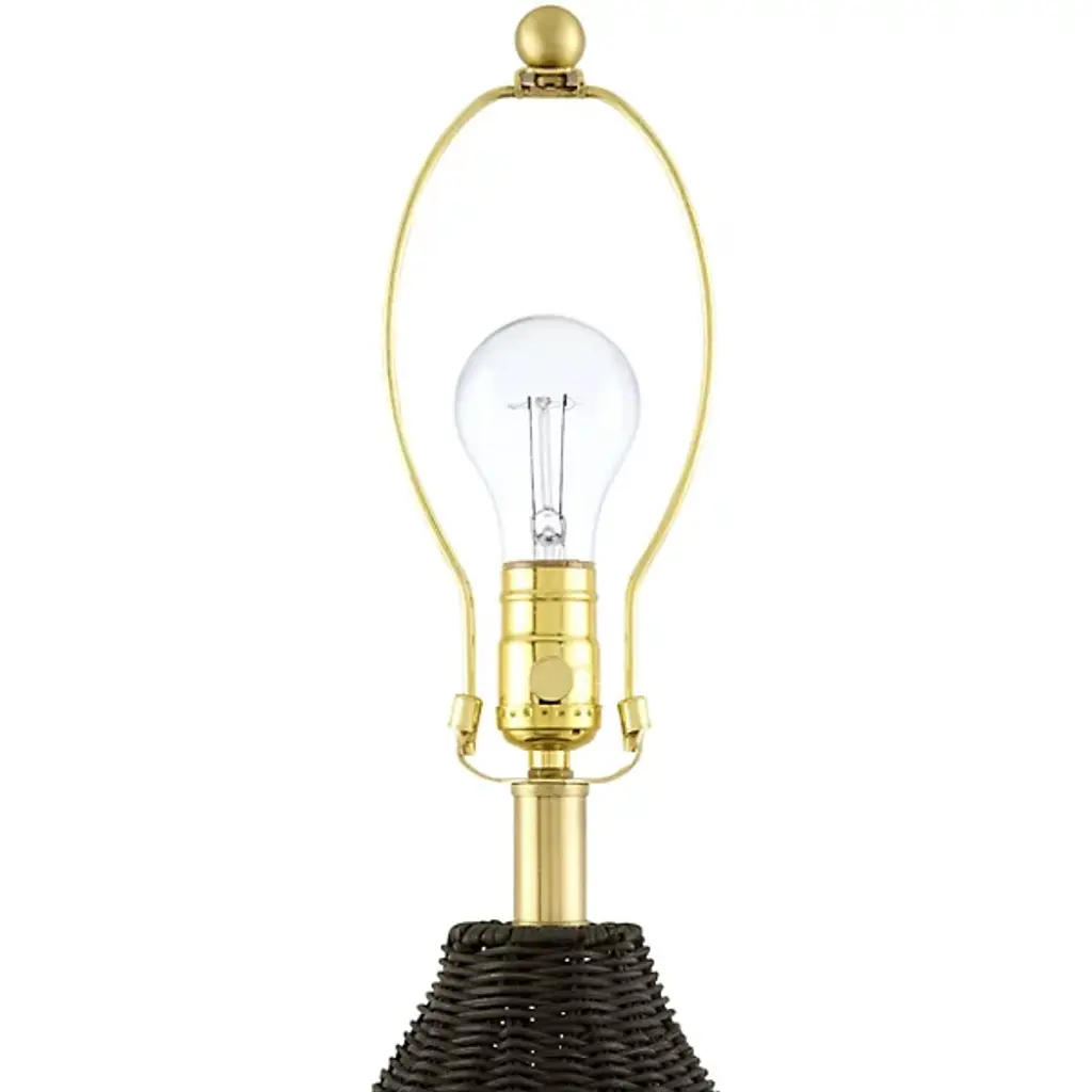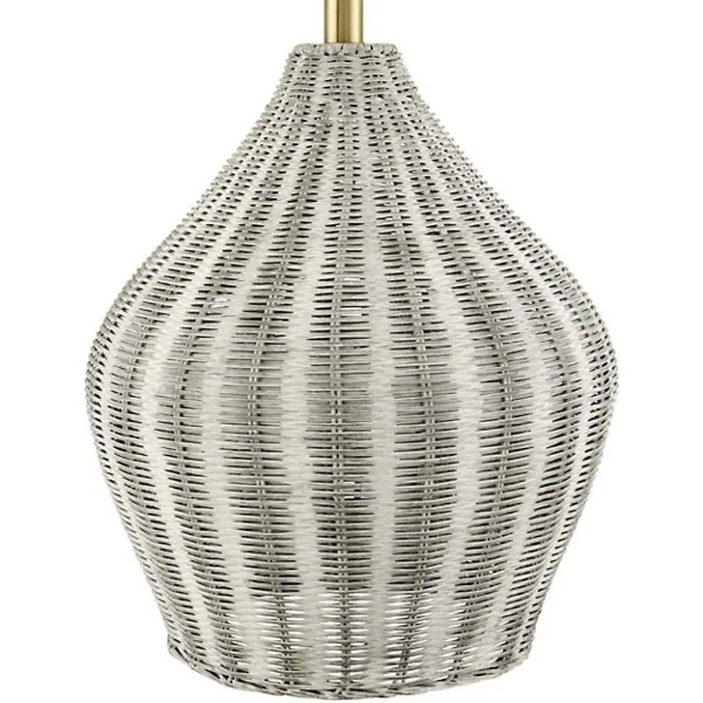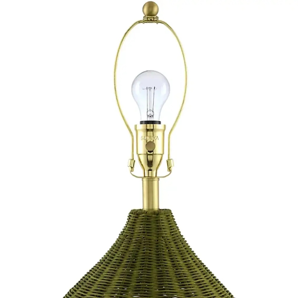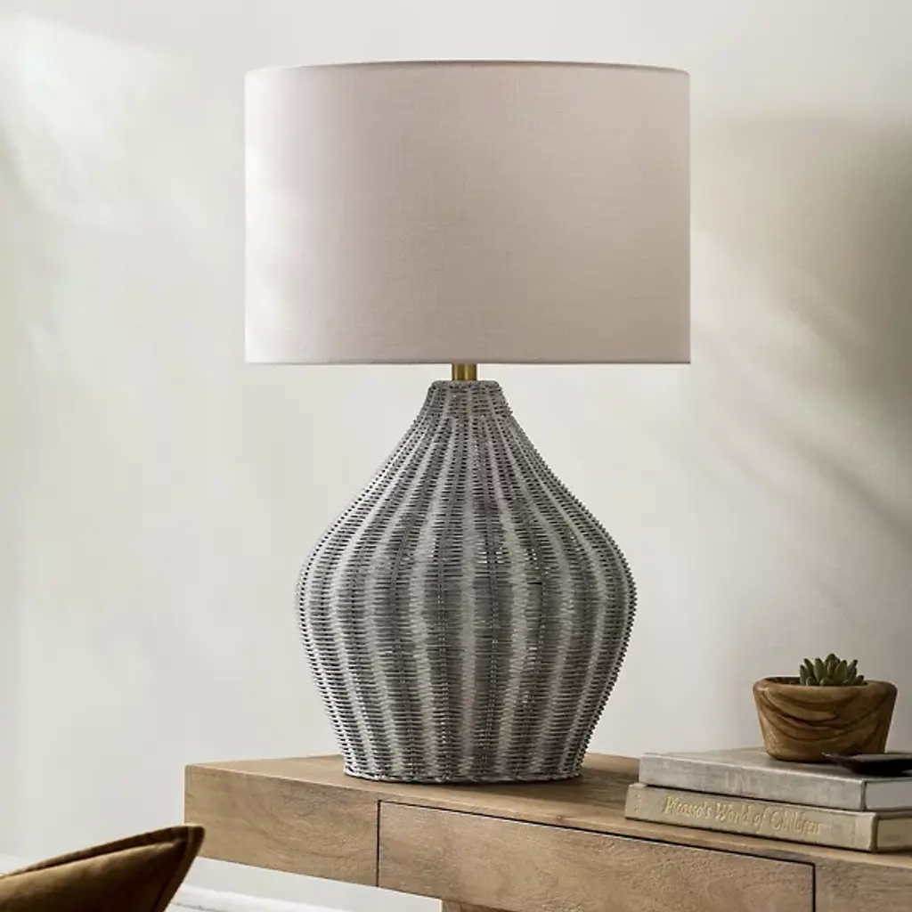 The Velles Table Lamp from Surya brings a natural feel to your home with its carefully woven rattan body. When lit, the lamp creates gentle patterns around it, giving nearby areas more character and interest. The plain linen drum shade sits nicely above the textured base, keeping things balanced. This lamp works nicely on small tables beside couches, next to beds, or in hallway spaces, making its presence known without taking up too much room or attention. You'll find this accent piece easy to use with its simple switch for quick on and off.