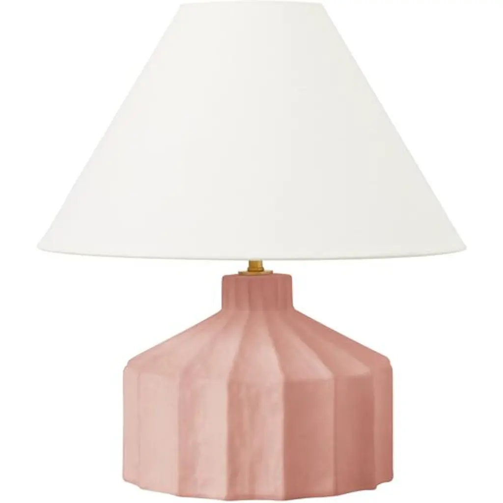 The dusty rose finish shows off the artisanal ridges and texture of this table lamp's ceramic body. The crisp white linen shade is an ideal complement.A-list designer Kelly Wearstler is known for marrying modern and vintage influences to create fresh, glamorous interiors and furnishings. Her collaboration with Generation Lighting makes it easy for you to bring her distinctive style to your home.