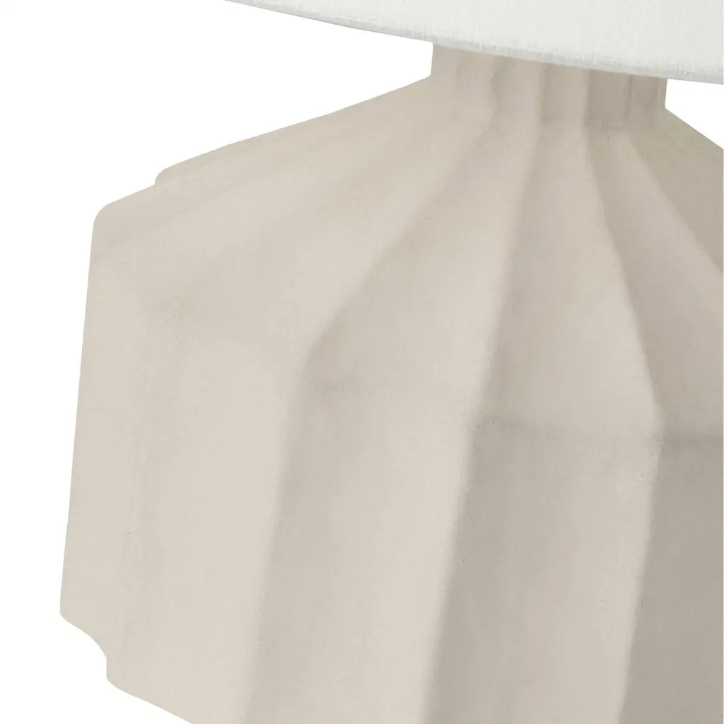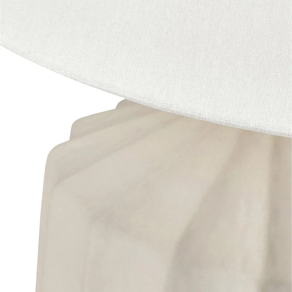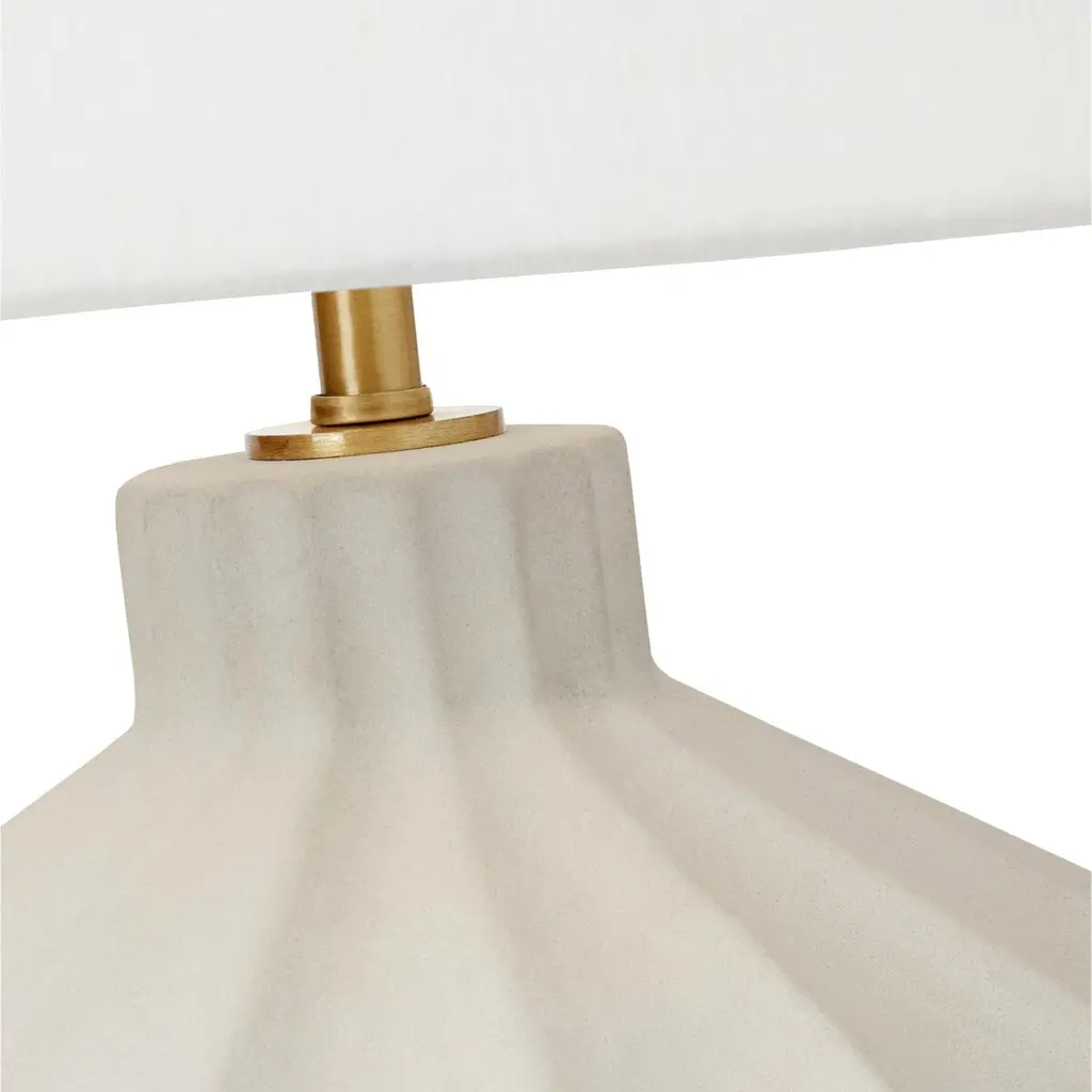 The matte concrete finish shows off the artisanal ridges and texture of this table lamp's ceramic body. The crisp white linen shade is an ideal complement.